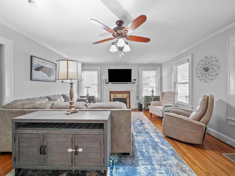 Charming and thoughtfully updated Victorian-style home, nestled in the desirable Brookwood Historic District - minutes from I-85 and the vibrant FUSE District/downtown Gastonia. The original hardwoods, crystal doorknobs, beautiful crown molding, heavy trim are just a few features that preserve the character of the home. The inviting living room abundant in natural light, updated kitchen (2021) featuring granite counter tops and stainless steel appliances, new windows and blinds, newer HVAC and furnace (2023), encapsulated crawlspace (2021) provide modern conveniences and peace of mind. The home offers versatile living with three bedrooms upstairs and an additional bedroom on the main level, ideal for guests or a dedicated home office. Enjoy morning coffee or evening relaxation rocking on spacious front porch, and entertain guests in the backyard under the pergola, or around the built-in firepit. This home truly combines historic charm with modern comfort?don't miss it!