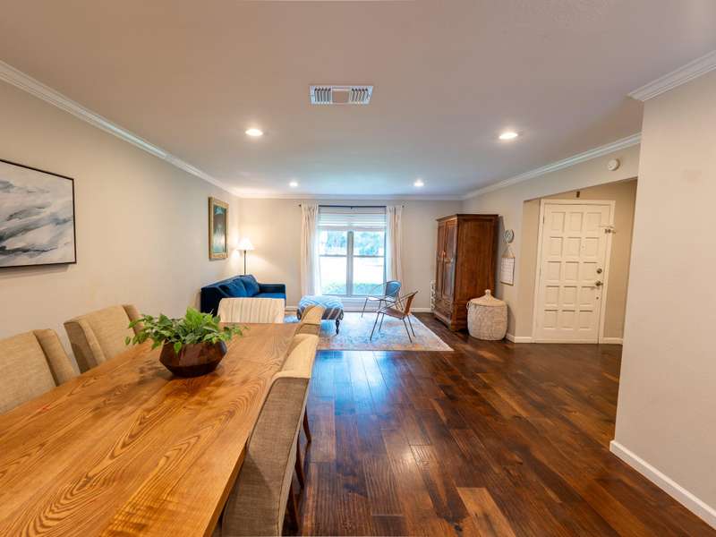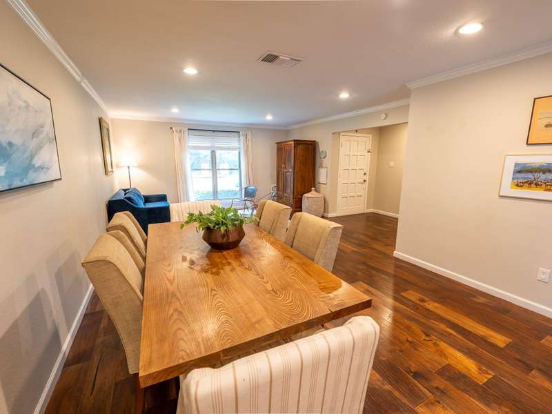 Single-story stone home in a desirable Travis Country neighborhood. The neighborhood features hike/bike trails, community pool, and mature oak trees, providing natural beauty and privacy located just minutes from downtown Austin. This spacious home offers an open floor plan with rich wood floors throughout and wood beams anchoring the formal living rooms striking stone fireplace. The location combines the best of both worlds- peaceful natural surroundings with quick access to the city.
