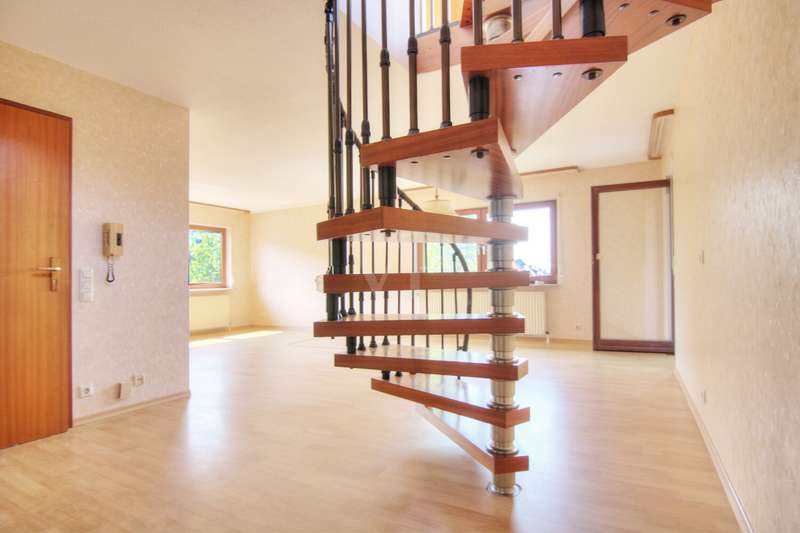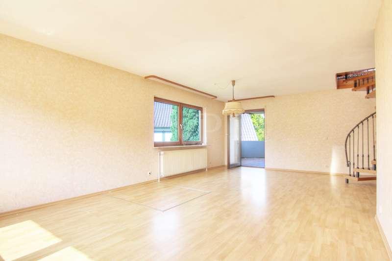 Maisonette with a view & potential - 121 m² in a top location in Heilbronn This spacious maisonette apartment impresses with its well thought-out layout, bright atmosphere and sought-after location in a well-kept three-party building in Heilbronn. This unit accounts for just over half of the ownership shares. Highlights: - Built in 1984, solid construction - Maisonette over two levels - Light-flooded living and dining area with large balcony - Roof terrace with panoramic view - Two daylight bathrooms + guest WC - Garage and cellar room included The apartment has already been completely cleared out and cleaned - a solid basis for creating your own dream home with a little craftsmanship or the joy of renovation. The old kitchen has already been removed and is waiting to be replaced by a modern solution. Upstairs you will find the master bedroom with access to the large roof terrace. Two cozy bedrooms, the open-plan living/dining area and practical extras such as a pantry round off the space on offer. A modern floor heating system (2018) ensures pleasant warmth and contemporary energy efficiency. Location: Quiet residential area with harmonious neighborhood, low traffic congestion and yet short distances to shopping facilities, schools and public transport. Conclusion: Whether for couples, small families or singles with a sense of design - this maisonette offers plenty of space, a great location and the potential to be designed according to your own ideas.