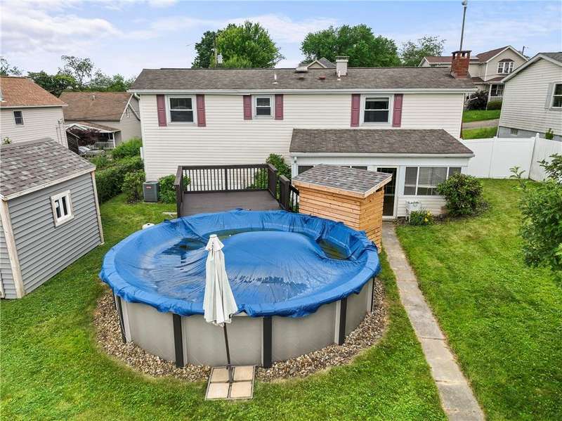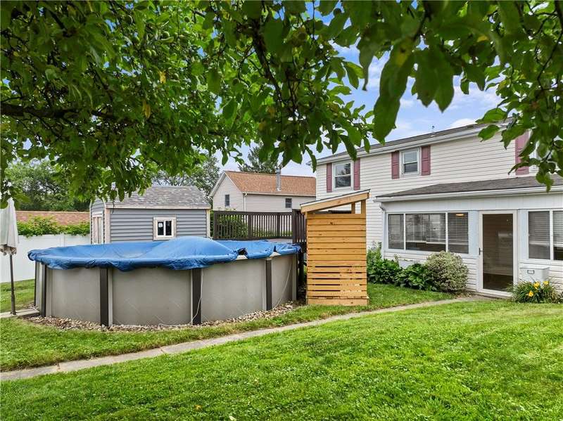 Move Right IN! Beautiful, custom built 3 bedroom, 2 updated bath split entry home, with gleaming hardwood floors, above ground pool, fenced in rear yard, huge finished basement with 2nd kitchen, family room w/ fireplace, laundry, half bath, and 3 seasons room. New shed, new pool, new fence, and new pool accessory cabana. New appliances, new lighting, fresh paint! Mature landscaping on quiet street. The 1st floor bathroom has been renovated! The living room is open to the dining area/kitchen ideal for entertaining. The 3-Seasons room off of the lower level family room leads out to the flat backyard and includes two brand new breezy fans for those hot summer days/nights! Lower level has so many versatile possibilities, in-law suite, man cave, entertainment level, just to name a few!