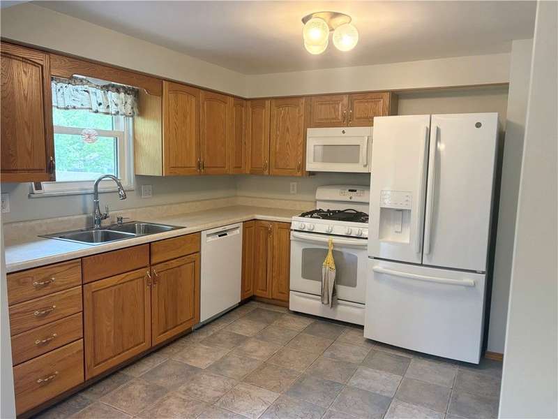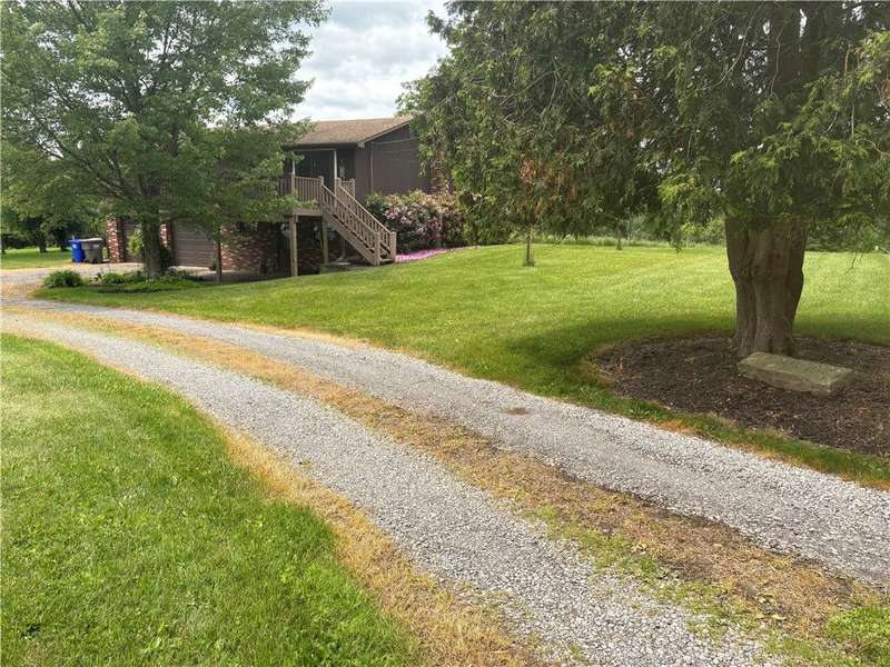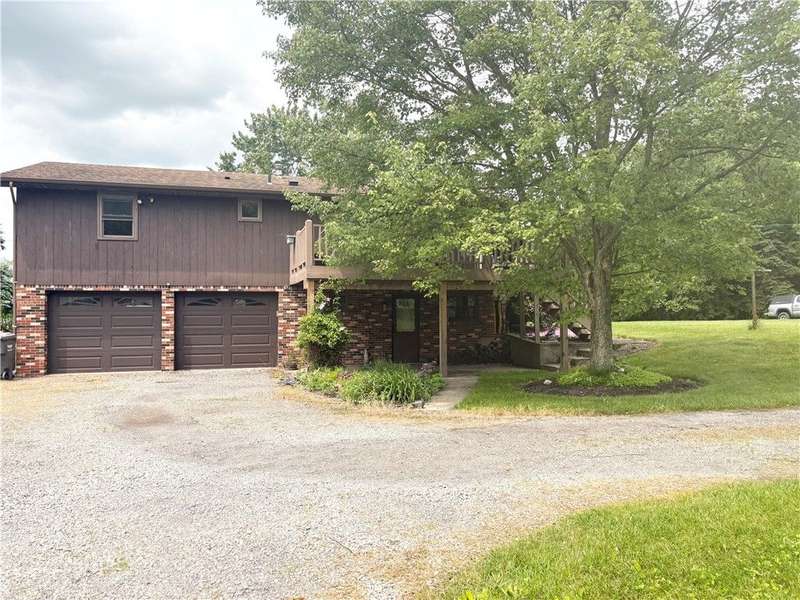 Nestled back off a private drive, this charming home offers a peaceful setting with the convenience of nearby Harmony and Zelienople amenities. Situated on a level lot, just over an acre, this 3 bed, 2.5 bath home features a spacious and functional layout filled with natural light. Upstairs, you'll find a large living room that opens seamlessly into the dining area, complete with sliding glass doors to the deck. The dining room flows into the bright, efficient kitchen. The primary bedroom features its own half bath. The main floor also offers two additional bedrooms and a full bath. The finished lower level expands your living space with a wood-burning fireplace surrounded by classic brickwork, additional full bath, and walk-out access to a patio overlooking the serene yard. An integral 2-car garage provides convenience and storage, along with a shed included for extra space. The large private yard offers endless possibilities.
