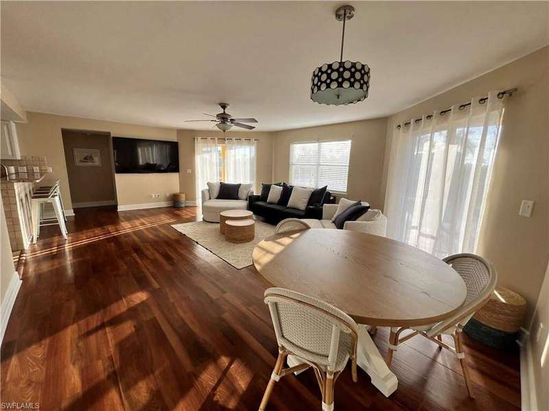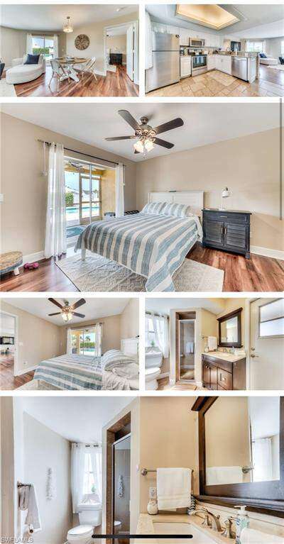 LOCATION LOCATION - Experience the charm of this beautifully appointed 2-bedroom, 2-bathroom luxury condo apartment In Ideally situated just a short stroll from RUM RUNNER Marina/ Cape Harbour w 2 private lanais facing a pool backyard Oasis! Easy walking access to vibrant nightlife, exquisite , scenic waterfront dining opportunities in cape harbour The modern interior boasts granite countertops a thoughtfully designed split floor plan, and (2) private screened patios accessible from each bedroom. All Bedrooms and living room have ceiling fans. The patios offer stunning views of the expansive inground pool area below, which features comfortable (2) half moon semi circular sofas with firepit and tiki umbrella, outdoor shower, a dedicated golf Putting area, and a convenient barbecue grill for outdoor enthusiasts. A TRUE PARADISE and walking distance to SW Cape Harbour Cape Coral!! Off street parking plus BONUS garage space! Washer dryer in unit! Unique Benefits - -Cape Harbour Marina and Rumrunner. Short Walking distance (next door) -Airport 16 miles -Fort Myers Beach 13 miles -Cape Coral beach 4 miles -Sanibel Lighthouse beach 17miles -Jaycee park steps away Close to many bars and restaurants in downtown Cape Coral Tier 1, credit with proof of income