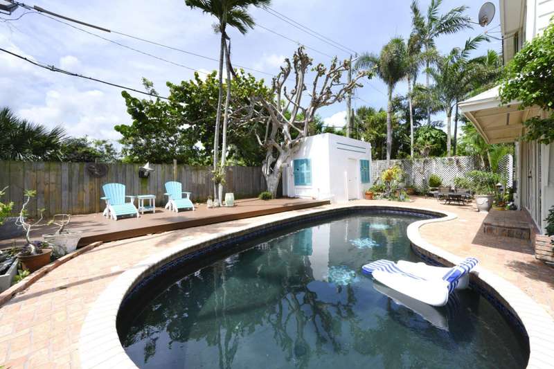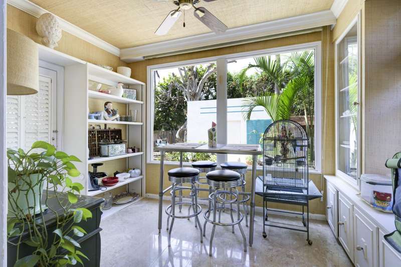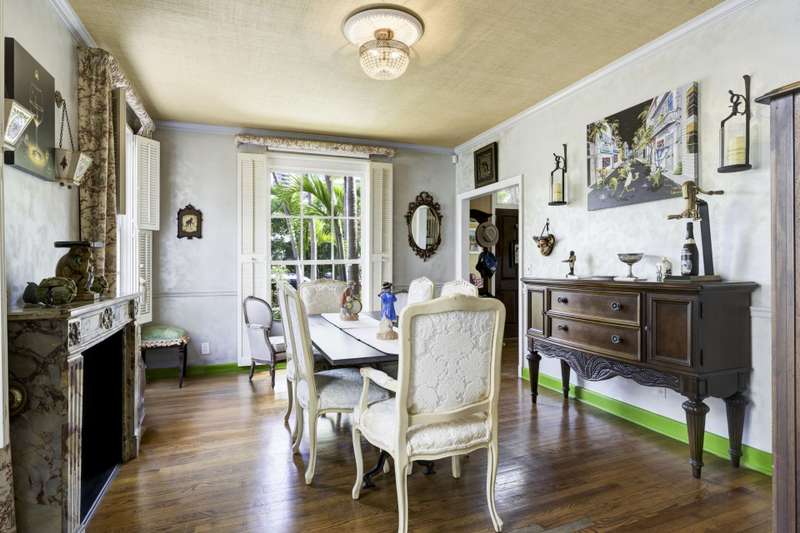 Timeless charm meets comfortable elegance in the heart of West Palm Beach. This Georgetown-style two-story pool residence blends timeless character with thoughtful upgrades, creating the perfect setting for relaxed living and effortless entertaining.Inside, Miami Dade Pine hardwood floors, elegant crown molding, and soaring 9-foot smooth ceilings set the tone. Custom built-ins offer both beauty and function throughout. Gather in the formal living room around the decorative fireplace or take in garden views from the bay window and adjacent home office. First floor features bedroom with wall-to-wall built-in shelving and pool view. Full downstairs bath with counter height vanity, tiled countertops imported from Bali, and a walk-in shower with glass doors and tiled flooring. The gourmet kitchen is a chefs dream featuring a commercial-grade Thermador gas range, double oven, and stainless-steel Samsung bespoke French door refrigerator ready for family meals or festive gatherings. Upstairs, a charming primary suite with morning kitchen and sitting room provides privacy, comfort, and views of the Intracoastal. A spacious guest bedroom boasts two closets. Outdoors, unwind by the lagoon-style pool with diamond bright finish and mosaic tile decor, Chicago brick patios, and a tranquil summer kitchen your own private retreat. Enjoy modern comforts like newer A/C systems (2018), and newer water heater. Tucked in a beautiful neighborhood just minutes from WPBs vibrant entertainment, shopping, beaches,The Park Golf Course, Flagler Drive, City Place, Rosemary Square and dining scene. Conveniently located minutes to PBI Airport and major highways. Its more than a home, its a lifestyle. Dont miss the chance to experience it for yourself.