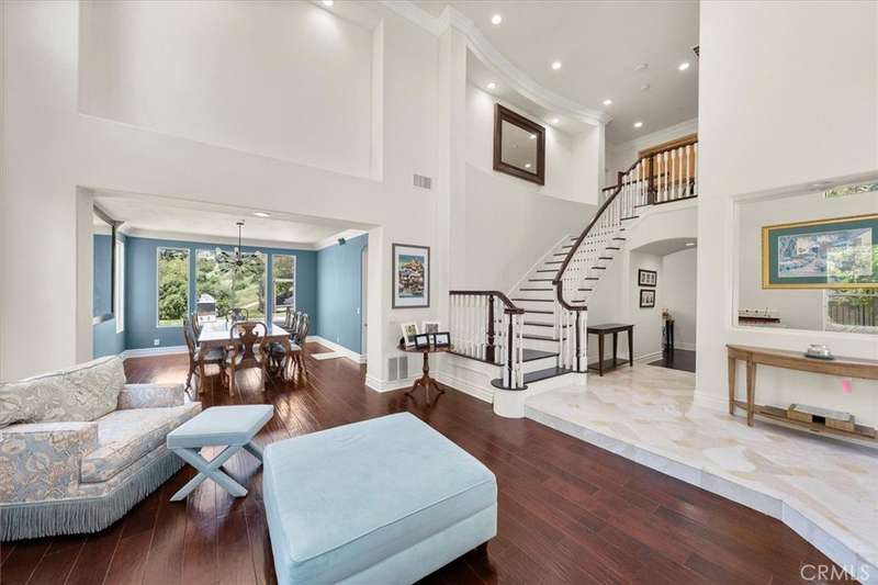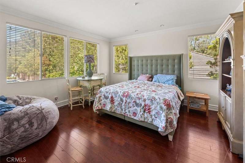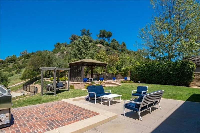 INCREDIBLE VALUE! Tucked away within the prestigious guard-gated enclave of Summit Point Estates, this exquisite five-bedroom, four-and-a-half-bath residence offers the perfect blend of timeless elegance and modern luxury. Situated at the end of a peaceful cul-de-sac, the home welcomes you with a stately double-door entrance that opens to soaring 30-foot ceilings and a bright, thoughtfully designed floor plan ideal for both refined entertaining and everyday living. The grand formal living and dining rooms exude sophistication, seamlessly flowing into a chef's dream kitchen—beautifully appointed with dual center islands, top-of-the-line Thermador appliances, and an abundance of custom French country cabinetry. The adjacent family room, anchored by a cozy gas fireplace, offers a warm and inviting ambiance, while the charming breakfast island provides the perfect spot for casual dining. A well-appointed guest suite with a private bath completes the main level, ideal for visiting family or friends. Upstairs, the expansive primary retreat features a serene sitting area, dual walk-in closets, and a luxurious en-suite bath with double vanities, soaking tub, and separate shower. Three additional bedrooms—two sharing a Jack-and-Jill bath and one with a private en-suite—provide ample space for family or guests. Walls of glass open to the resort-inspired backyard, where lush landscaping surrounds a sparkling pool and spa, expansive lawn, and covered patio—offering an idyllic setting for entertaining or tranquil relaxation. A finished four-car garage, complete with a 220-volt EV charger, adds to the home's exceptional amenities. Located in the scenic Santa Monica Mountains, just minutes from hiking trails, premier shopping and dining at The Village, and the iconic beaches of Malibu—this is California living at its finest.