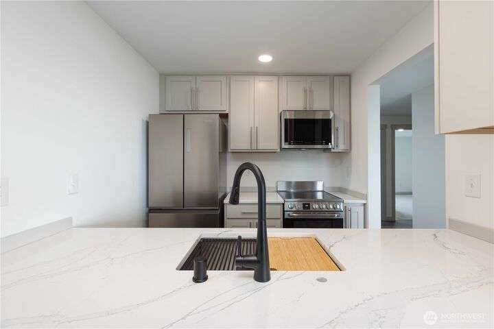 Come live the easy life! This fully remodeled condo with incredible water and Olympic Mountain views offers you peace of mind while the rest is taken care of for you. The seller has left no detail overlooked in this remodel. Enjoy added insulation within walls, floors, and ceiling, thoughtful details, and all new everything from inside and out! This is a must see condo! In addition to your peaceful deck overlooking the Port Washington Narrows and Bremerton Yacht Club, you'll enjoy a clubhouse w/ pool and sauna. This 2 bedroom, 1 bath, top floor condo comes with separate dedicated storage facility and covered assigned parking spot. Close to Bremerton Ferry and shipyard.