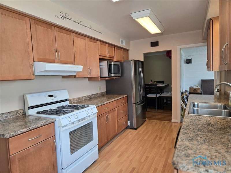 River Rd Gem is Clean & Move In ready ranch that is larger than looks w/ 2 separate living areas Living rm & dining rm combo is L-shaped. Hardwood under bedrm carpet except primary. Well maintained- many updates. UPDATES: Primary bed & both baths, kitchen, HWT '19, furnace & CA '09 has gas & electric heat pump, Seamless siding, vinyl windows, Lg fenced yard w/ deck. Garage has own electric. Walk in closets, double laundry sink. Conveniently located & a mile from downtown. Pool table, ping pong table & shelves & laundry table stay. Pergola is negotiable.