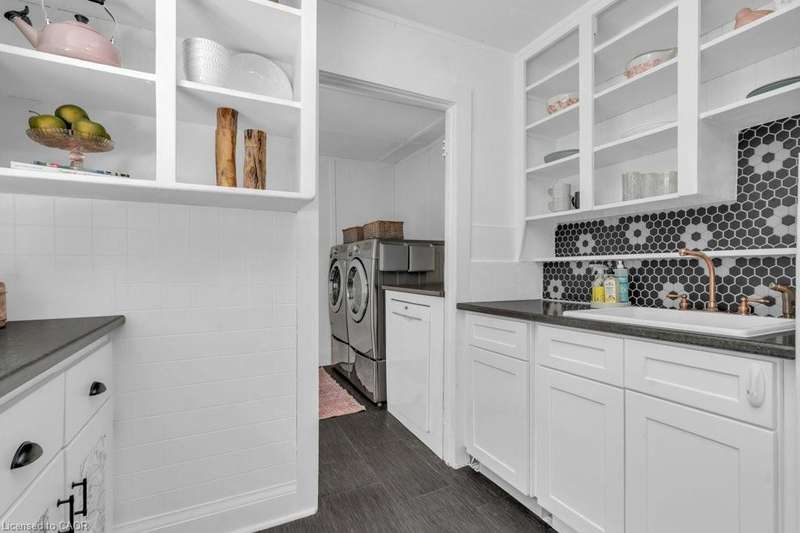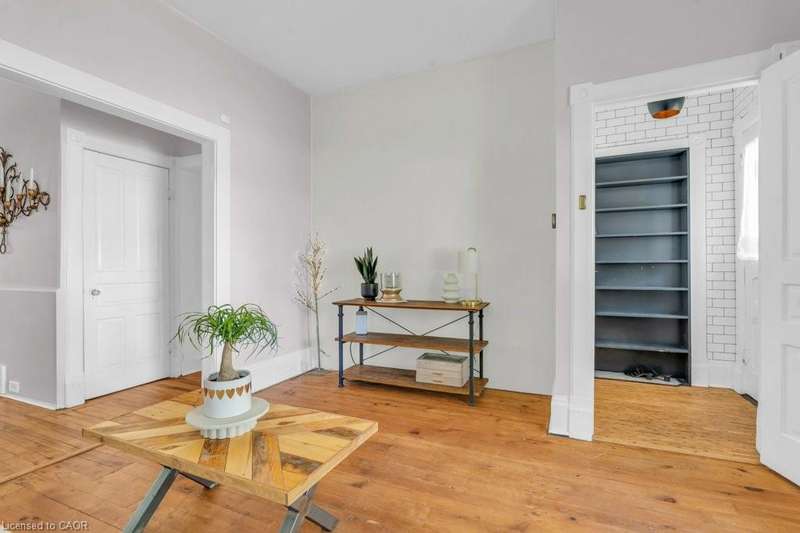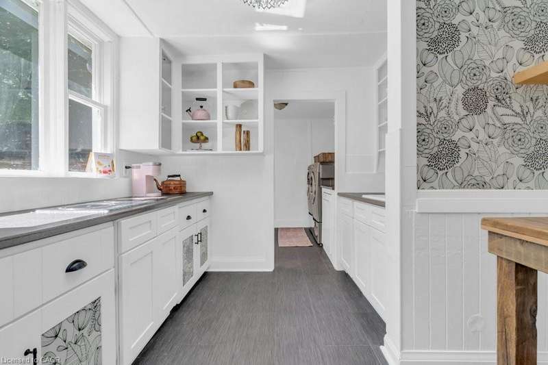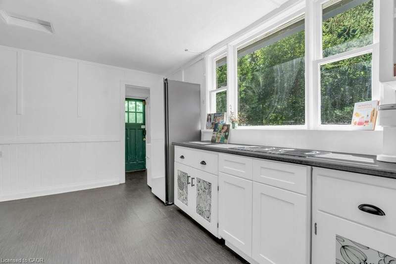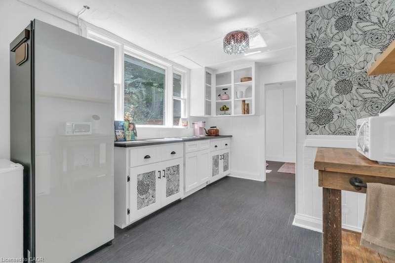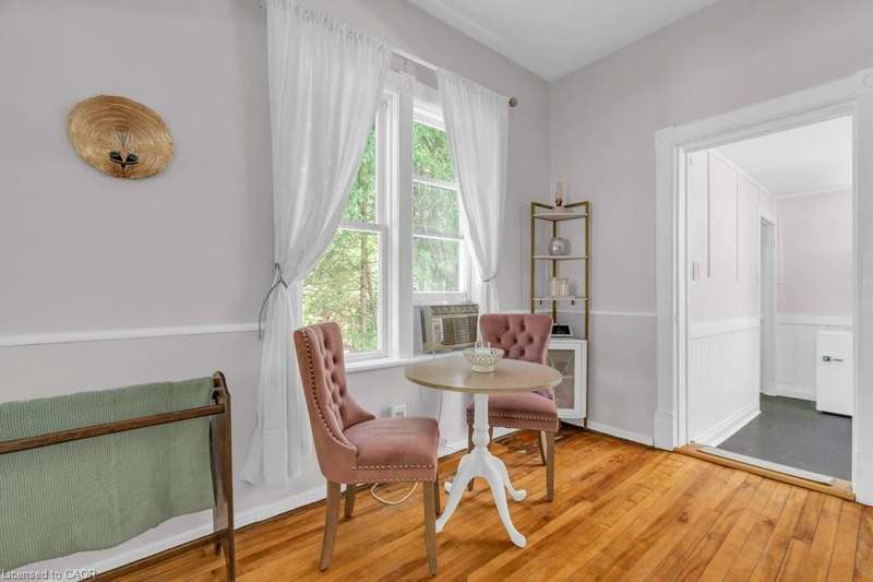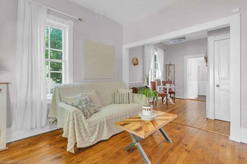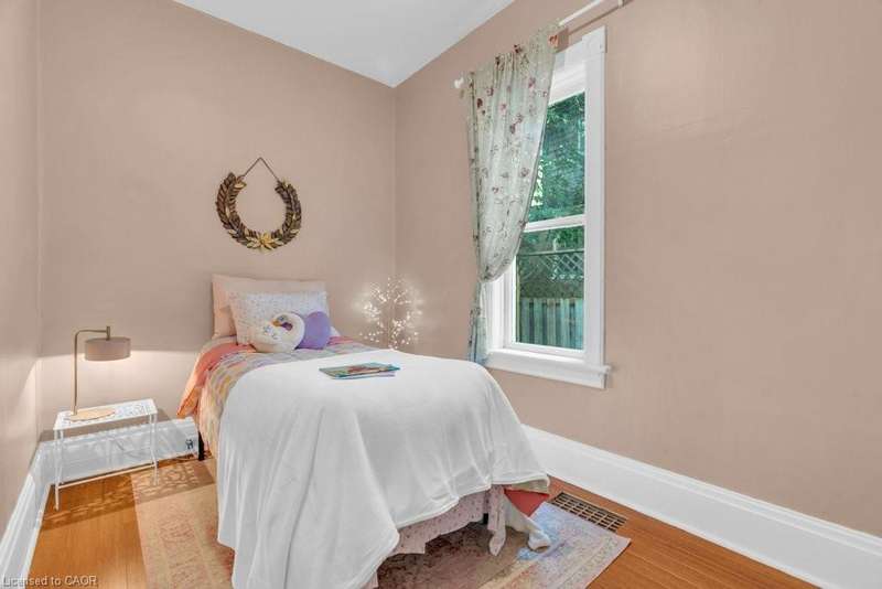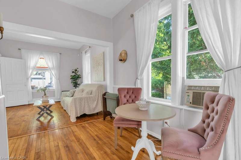 This enchanting cottage house, built in 1902, is believed to have been crafted by descendants of Joseph Schneider’s family—a true connection to history. Nestled on a quiet street overlooking the beauty of Victoria Park, this heritage home is brimming with character and charm. Early morning walks, peaceful evening strolls, and coffee on the front porch will become part of your daily ritual. The white brick exterior, restored wrought iron railing, and vibrant red front door create a captivating first impression. Inside, discover tall ceilings, original sun-themed stained glass windows, and hardwood floors in the main living area. The master bedroom, second bedroom, living/dining area, kitchen, laundry, and bathroom are conveniently located on the main floor, offering a seamless & relaxing lifestyle. Upstairs, a versatile space awaits—perfect as a bedroom, den, or quiet home office. Sunlight flows through the large kitchen windows, creating a bright & inviting space to start your day. Professionally completed upgrades include a luxurious shower/tub combo with subway-style walls and sleek brushed nickel fixtures, a high-performance bathroom exhaust fan with customizable settings, some updated ductwork, and new attic insulation for improved energy efficiency. Additional enhancements include a striking new vanity, oversized bathroom mirror, premium light fixtures, upgraded plumbing coming into the house, and an owned water softener installed in 2023. The basement offers ample storage and a dedicated room for canning, preserving, or crafting your own wine. Step into the backyard oasis—generous in size, wonderfully private, and surrounded by a canopy of trees. Whether you dream of a vibrant garden, a spacious deck, or a relaxing hot tub retreat, this backyard provides endless possibilities. A charming wooden garden shed is perfect for all your tools and equipment. Don’t miss this opportunity to own a piece of history in one of Kitchener’s most treasured neighbourhoods!