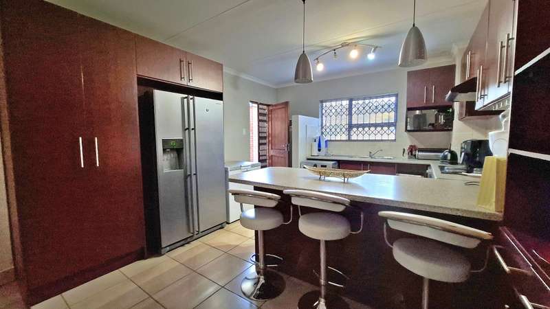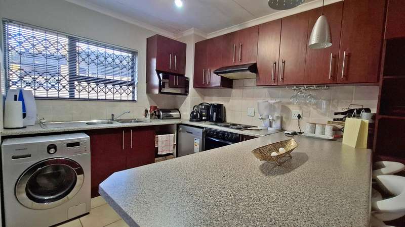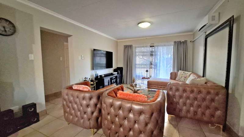 This spacious and well-appointed three-bedroom ground floor unit offers comfortable living in a secure, pet-friendly complex. Perfectly suited for families or professionals seeking convenience and peace of mind, this home ticks all the right boxes. Step into a light-filled, open-plan living and dining area with air conditoner that flows effortlessly through sliding doors onto a manageable garden—ideal for relaxing or entertaining. The kitchen features a built-in hob and undercounter oven, providing functionality and style. The main bedroom is a tranquil retreat, complete with air conditioning, a full en-suite bathroom with double basins, and ample built-in cupboards. The two additional bedrooms are generously sized and share a modern second bathroom. Key Features: • 3 Bedrooms | 2 Bathrooms • Open-plan living area with sliding doors to the garden • Kitchen with hob and undercounter oven • Main bedroom with air conditioning and full en-suite (double basins) • Manageable, pet-friendly garden • Two covered garages + ample guest parking • Prepaid electricity • Maxidoor security gates and burglar bars on all windows for added security • Access to communal pool and braai facilities This secure, well-maintained complex offers lifestyle and convenience in one. Don’t miss out—schedule your viewing today!