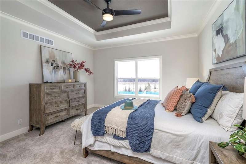 The Westhampton by SAB Homes is a stunning Reverse 1.5 Story free-standing villa located on Lot 84 in the Enclaves at Boulder Hills. Set on a flat lot, this home offers an inviting open-concept layout featuring a spacious great room with a gorgeous fireplace, a wall of windows for abundant natural light, and seamless flow into the kitchen and dining area. The kitchen includes a large island, walk-in pantry, and generous dining space—perfect for everyday living and entertaining. The main-floor primary suite offers comfort and convenience, with a large walk-in closet and direct access to the main-level laundry. A second bedroom—ideal for guests or a home office—and a full bath complete the main level. Downstairs, you’ll find a large family room, a third bedroom, and an additional full bath. An optional hobby room can also be finished to suit your needs. A covered 9x9 patio offers a lovely outdoor retreat. Enjoy a carefree lifestyle in this maintenance-provided community with lawn care, irrigation service, and snow removal for $198/month. Annual $900 HOA includes access to resort-style amenities: pool, fountains, outdoor kitchen and fireplace, pickleball court, putting green, clubhouse, and playground. This villa is currently under construction and is scheduled to be ready by mid-March 2026.