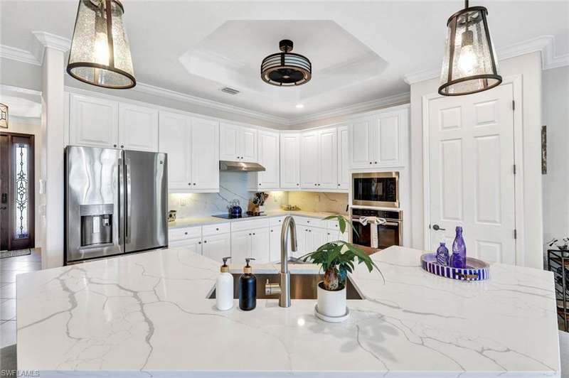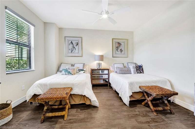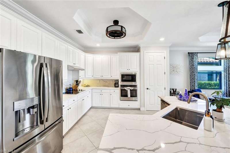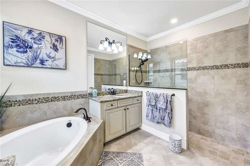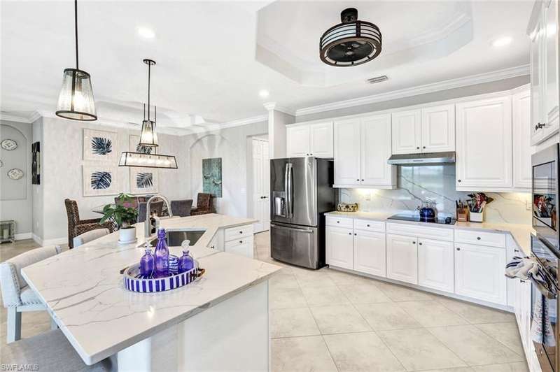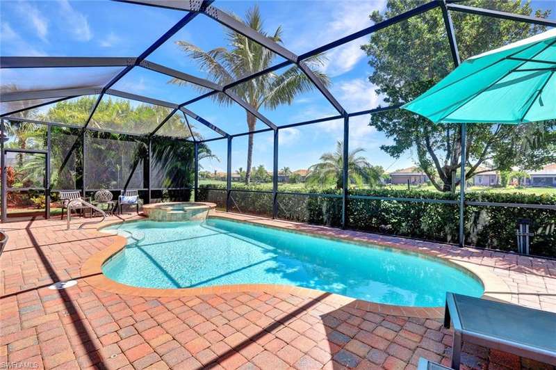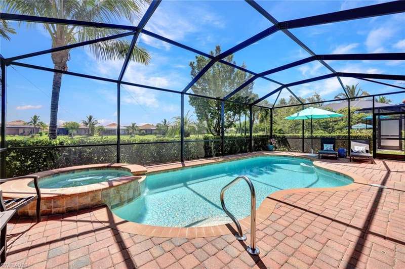 Bundled Golf! Transferable full golf membership! Experience the luxurious Golf and Country Club lifestyle of Bonita National in this stunning 2 Bedroom+Den, 2 1/2 Bath single family home complete with bundled golf! This gorgeous property is sure to check all your boxes. Beautifully appointed in earth tones with splashes of color throughout, this light and bright home features a large chef's kitchen, upgraded lighting, custom built outdoor grill and bar area, fire pit, and an inviting pool, all overlooking the lush golf course! The den is set up as a third bedroom and an attached 2 car garage provides security for your vehicle. Bonita National is a guard gated community and offers a stately Clubhouse with 2 pools, fine dining options, golf, tennis, fitness center with classes, and even a full-service spa.