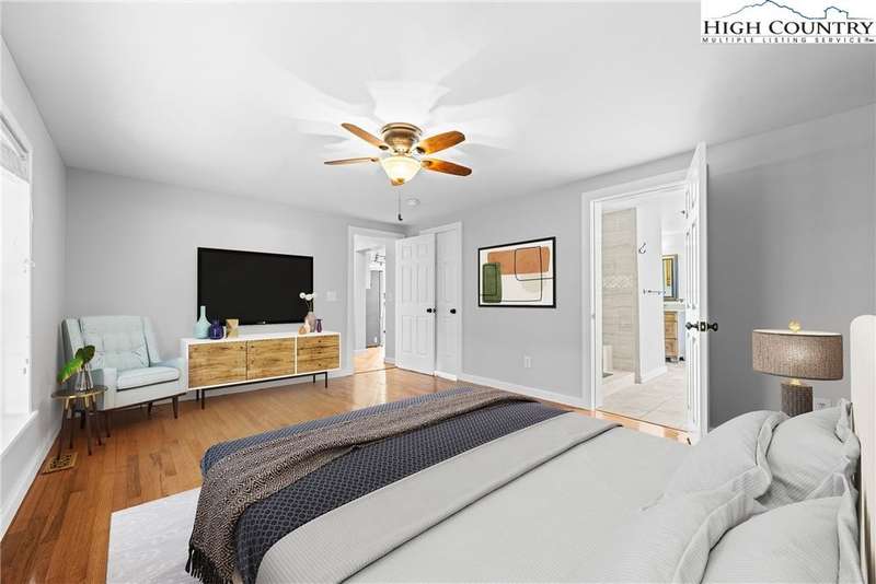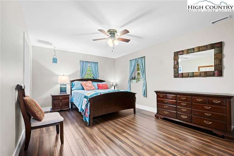 Presenting a meticulously cared-for duplex set on a sprawling 1.361-acre lot, perfectly positioned between the vibrant towns of Boone and Wilkesboro. This unique property is just an hour and fifteen minutes from Winston-Salem and mere moments from the breathtaking vistas of the Blue Ridge Parkway, offering an ideal combination of privacy, accessibility, and scenic tranquility. Surrounded by a lush lawn and mature wooded borders, the duplex encompasses two spacious units, each designed for maximum comfort and versatility. *Washers and dryers do not convey. The upper-level unit boasts 4 bedrooms and 2 bathrooms, (2,128sq ft) with a magnificent wrap-around deck?partially covered for year-round enjoyment (2589 sq ft). Step inside through elegant french doors to a large living and dining area. The impressive kitchen, conveniently located in the center of the unit, boasts stunning tiled countertops, tiled floors, ample counter space, skylights providing natural light and stainless appliances for culinary enthusiasts to enjoy. The adjacent cozy family room offers a stone wood-burning fireplace and abundant natural light. Additional features include good size bedroom closets, hardwood and tile floors throughout and a luxurious primary bathroom with an oversized tub, ceramic tile shower, and dual vanities. The primary bedroom has space for an array of creative options and features a custom-built closet. The second renovated bathroom is conveniently located by the other bedrooms and living space. All rooms are equipped with ceiling fans. The interior stairs lead to direct access to a workshop, storage area, and a two-car garage.The lower-level unit, measuring 1,467 square feet, offers two large bedrooms and one well-appointed bathroom. Currently leased through March 31, 2026, with an option to vacate on 30 days' notice, this unit is a highly attractive choice for investors seeking reliable returns. Bathed in natural light from abundant windows, both bedrooms are large enough to accommodate king-size beds and include additional office or study nooks. The spacious Jack and Jill bathroom features a substantial vanity, an expansive tile shower, and plenty of storage. Luxury plank vinyl flooring runs throughout, complemented by tiled surfaces in the kitchen and bath for durability and style. The kitchen offers ample prep space, cabinetry, and room for a kitchen island and dining area, making it a welcoming hub of the home.Both units are built for quiet living and energy efficiency, featuring high-quality insulation and individually metered propane, electric, and internet utilities, while sharing water and sewer for added value. All renovations and upgrades have been completed with proper permits, documentation available upon request for peace of mind. Whether you are searching for a move-in ready residence or a proven, well-maintained rental investment, this exceptional duplex offers lasting value, adaptability, and enduring privacy in a serene mountain setting?making it a true gem in North Carolina's picturesque landscape.