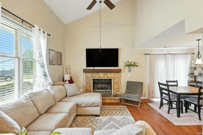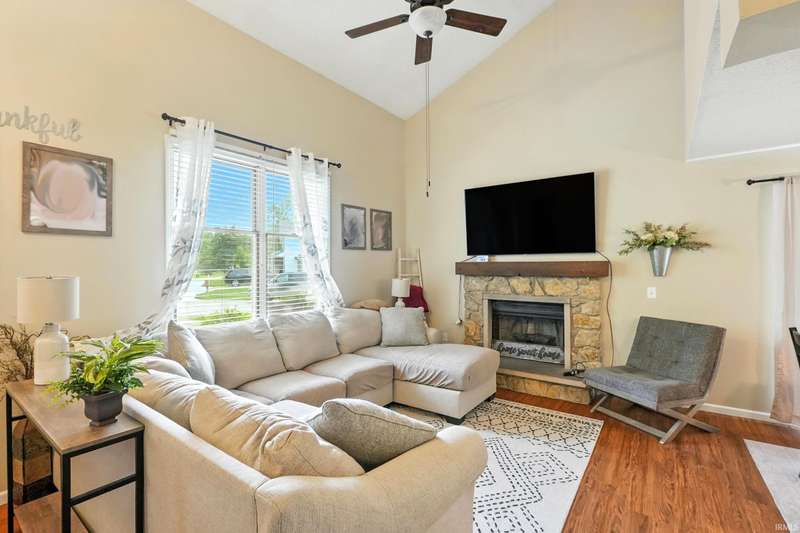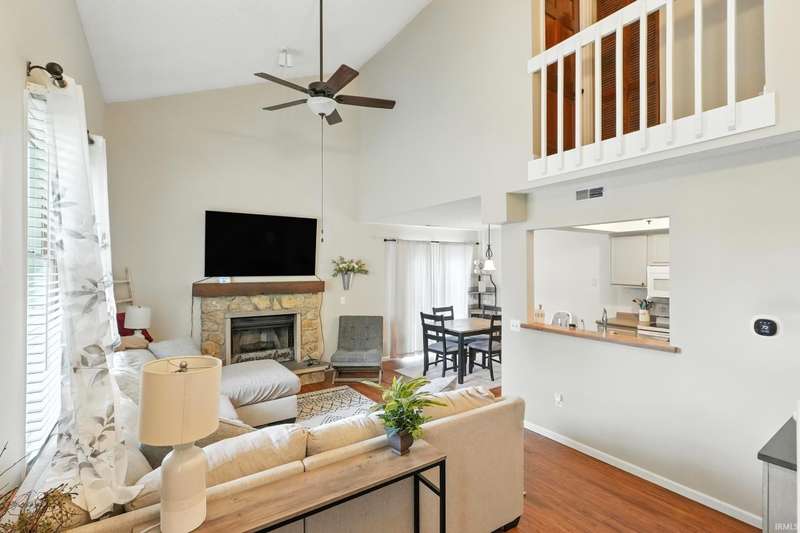 Welcome to this awesome condo sitting on a larger corner lot with wonderful outdoor space to enjoy! You'll love the driveway — perfect for extra parking when friends or family visit. The private patio is great for relaxing or entertaining and overlooks the roomy yard space. Inside, the main floor features a cozy great room with vaulted ceilings and a wood-burning fireplace — perfect for those cooler nights. There's also a convenient half-bath and a laundry closet with washer & dryer included. Upstairs, you’ll find two bedrooms with a full bath in between, plus a spacious primary suite with its own bathroom and large closet. The upper-level catwalk gives a cool view over the living area below! Your HOA takes care of all exterior maintenance, lawn care, and snow removal — plus you’ll have access to the community pool, clubhouse, tennis courts, and even pickleball. Low-maintenance, easy living with plenty of space and great perks — come check it out!