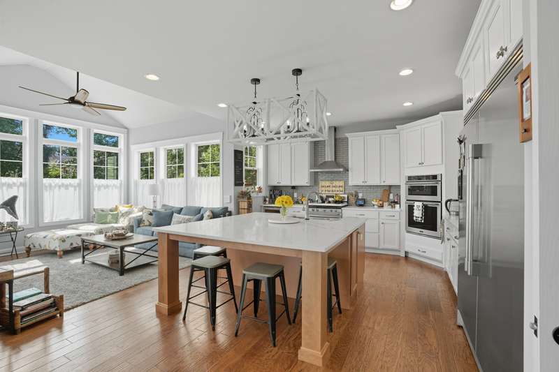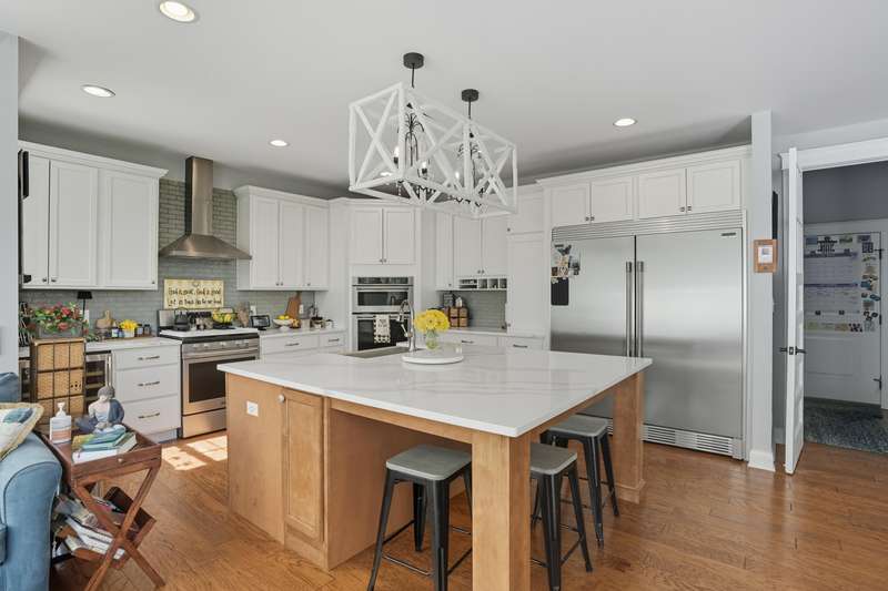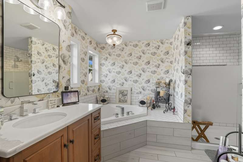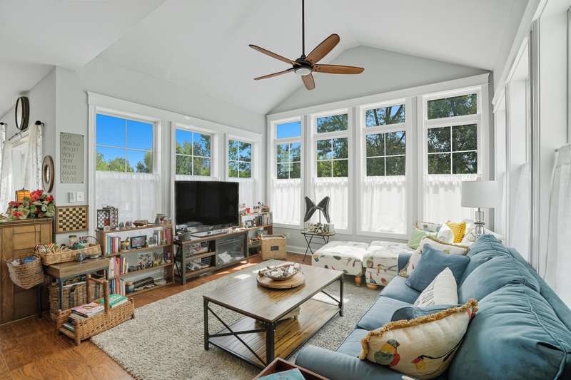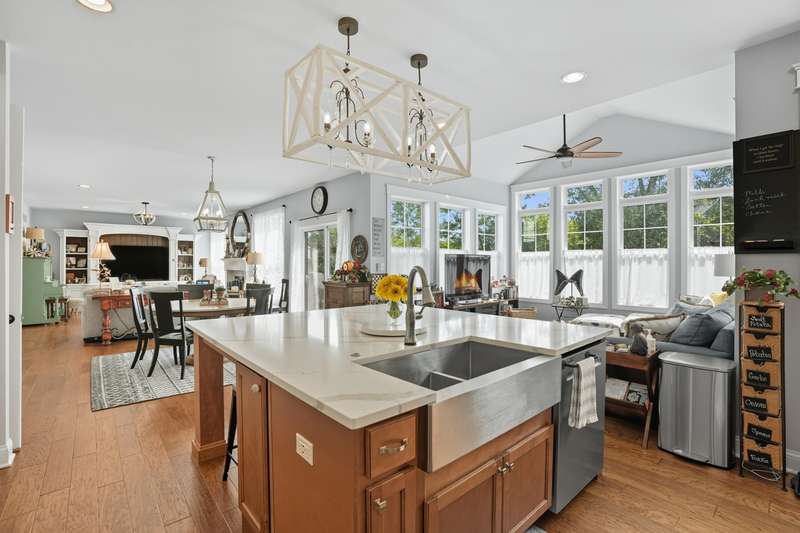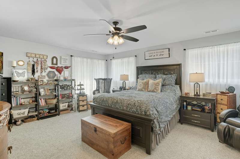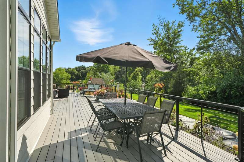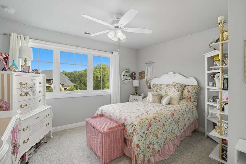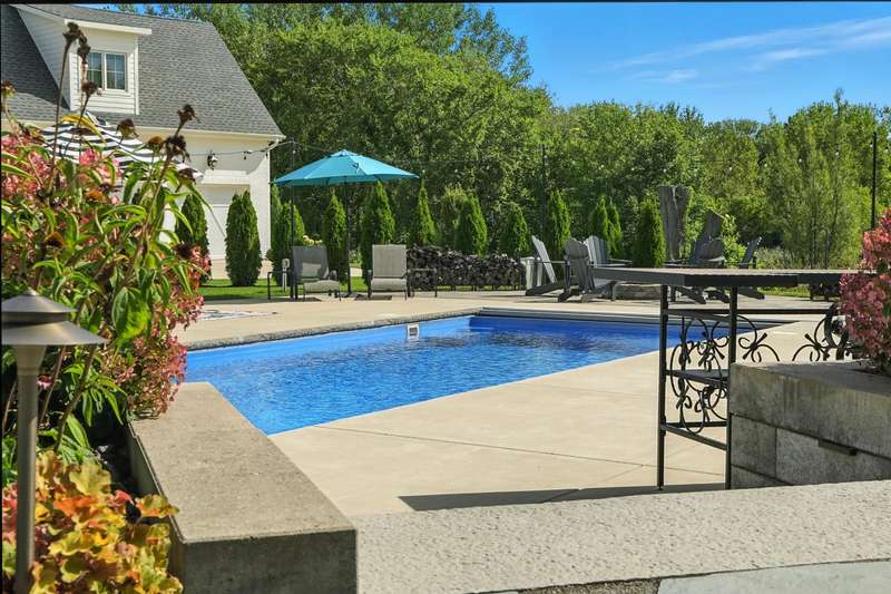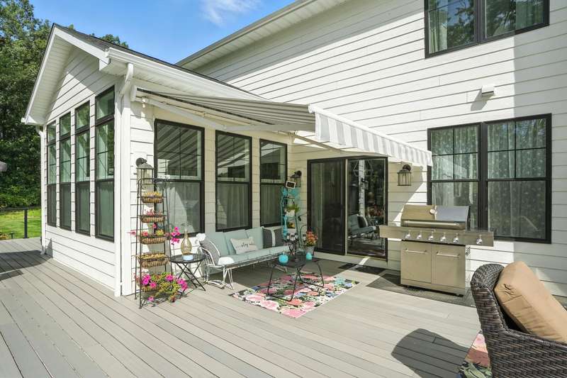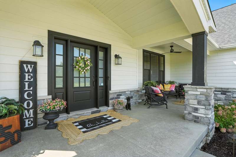 Welcome to this exquisite custom-built two-story home, perfectly situated on a serene .88-acre cul-de-sac lot, offering a peaceful and private wooded view that creates a tranquil atmosphere. As you approach the residence, you'll be greeted by a charming covered front porch, ideal for relaxing with a morning coffee or enjoying evening sunsets. Step inside to find an inviting foyer that seamlessly leads you into the great room, which features a stunning fireplace that adds warmth and ambiance, perfect for cozy evenings with family and friends. This space boasts a perfect blend of elegance and comfort. The open-concept kitchen is a culinary delight, featuring an oversized island that provides ample seating for gatherings, a spacious walk-in pantry, and a convenient mudroom. Sunlight floods the four-season room through an abundance of windows, creating a bright, airy space that's perfect for year-round enjoyment. The luxurious master suite is a true retreat, complete with an enormous walk-in closet, additional storage closets, and a spa-like master bathroom, ensuring your comfort and relaxation. The home also features three generously sized additional bedrooms and a well-appointed full bathroom, making it perfect for family living or entertaining guests. The main level is adorned with beautiful hardwood floors, adding warmth and sophistication. Step outside onto the expansive maintenance-free deck that wraps around the back of the home, complete with a powered awning to provide shade when desired, perfect for outdoor dining and entertaining. The professionally landscaped yard is nothing short of stunning, anchored by an inviting inground pool that serves as the focal point of the outdoor space. This backyard oasis features a cozy fire pit and a charming playhouse, coupled with ample grassy areas for hosting gatherings with friends and family. Unfinished basement is roughed in for future bath and finishing. 3.5 car garage is perfect for all your storage!