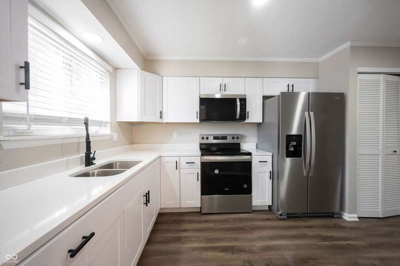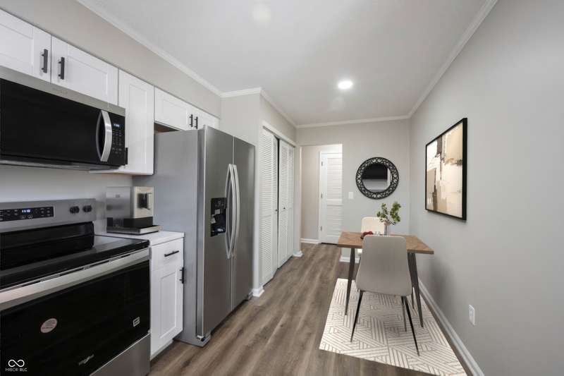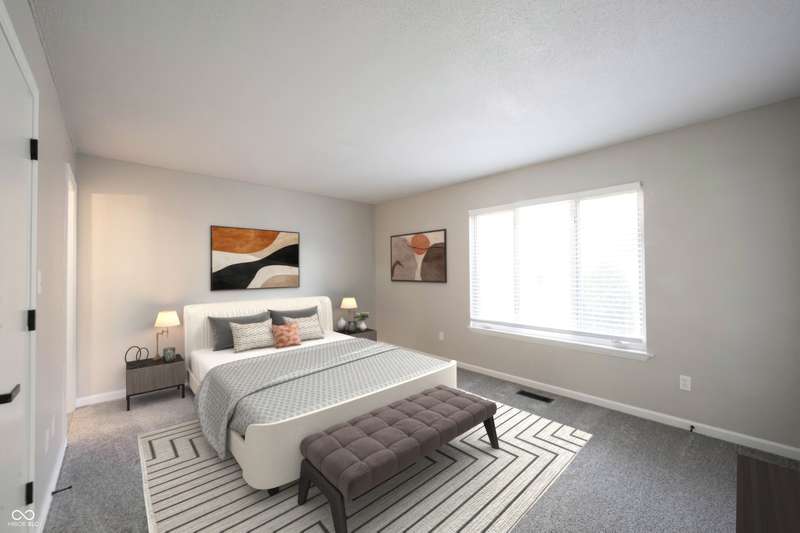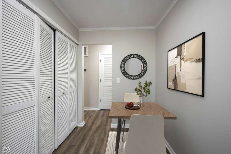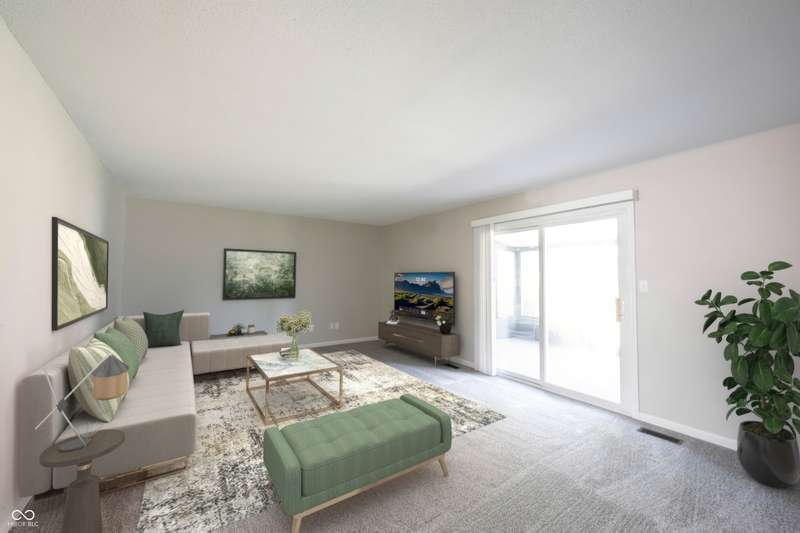 Welcome home to Hunters Glen a premier community offering affordable housing in the HEART of CARMEL! Location is everything on this hard to find property! Open the door to COMPLETLEY NEW finishes throughout! TURN-KEY and MOVE-IN READY! Enjoy the convenience of this FIRST FLOOR CONDO unit! Open the door to BRAND NEW luxury vinyl flooring spanning through the charming foyer with an abundance of trim! Neutral paint color throughout! Dining area just off the kitchen, easily converted to a 3rd bedroom or home office if desired, also with LVP flooring. BRAND NEW KITCHEN features white cabinets, Quartz counters, Stainless Steel Appliances all included! Spacious Greatroom with new Carpet just steps off of the 3-season sunroom, picture yourself enjoying your morning coffee, or an evening playing cards with friends in this inviting space! It's truly an extension of the home! Laundry convenient off the kitchen in a spacious closet. Guest bathroom at the end of the hall in close proximity to bedroom number 2, features a new vanity with quartz counters, new faucets, light fixtures and tub/shower insert, seamless flow of LVP flooring. Secondary bedroom with walk-in closet, tons of wall space for furniture! Owners' suite with ensuite bath, also completely updated with new vanity, quartz counters, faucets and lighting! Two Walk-In Closets complete the space! Nothing has been left untouched in this property! Notable mentions: New Water Heater, HVAC, 8/2025! Fantastic neighborhood amenities include a true extension of your home with the well-appointed clubhouse and community pool! Plenty of parking with assigned carport and plenty of overflow parking for your guests! Location is everything with this condominium with close proximity to shopping, dining, entertainment at the Palladium all within one of the most desirable places to live: Carmel Indiana!