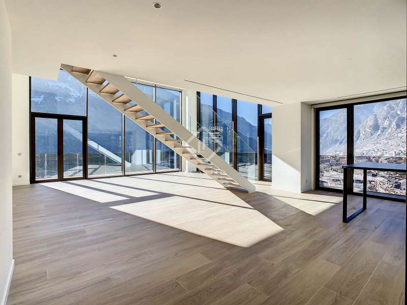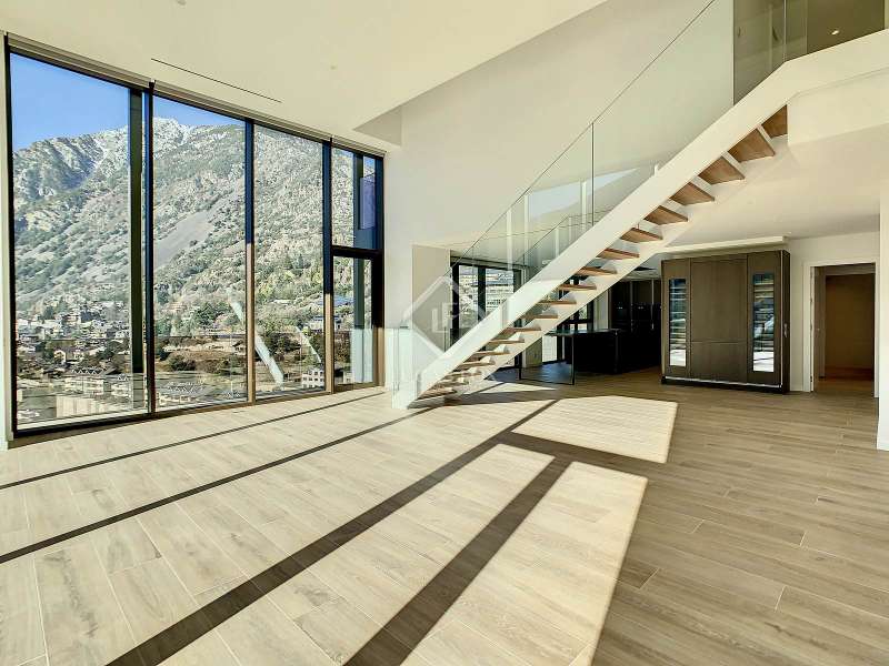 This luxurious and modern new-build development offers you exclusive 3 to 4-bedroom homes in the heart of the centre of Escaldes, in the heart of the shopping area and close to all services. The new-build development consists of two towers made up of high-end homes. Luxury, exclusivity and comfort perfectly describe these spaces, which will offer a new lifestyle concept to their future owners. First of all, we enter on the ground floor where we find a spacious double-height living room with access to a 27 m² terrace that surrounds the entire house, perfect for enjoying the beautiful views. We also have a spacious and bright dining room followed by a fully equipped open kitchen with a central island and a dining area. To complete this area we have a guest toilet and a laundry room. The night area, located on the second floor, is made up of 3 double bedrooms, all with access to an 8 m² terrace, including the master suite with its own private bathroom and dressing room. Also, we have a complete bathroom. To finish, we have a small area, perfect to enable a reading area. And finally, we find the second floor made up of a large diaphanous area, accompanied by a 99 m² terrace, with a chill-out area and an outdoor pool. The house is connected by stairs and a lift. The spaces are spacious and bright, ideal for a family. The house receives abundant natural light for much of the day thanks to the orientation of the building. In addition, it enjoys incredible views and maximum comfort thanks to its unbeatable location. The building also makes available to the owners parking spaces and large storage rooms, ideal for optimizing the space of your home to the maximum. A magnificent family home for sale in an exclusive location. Contact us for more information or to arrange a visit.
