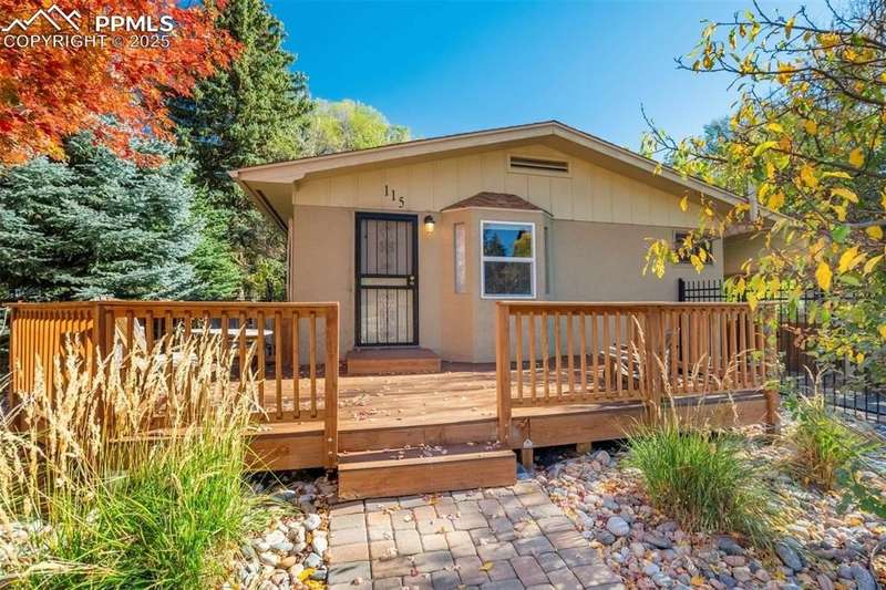 Turn-key property w/ established rental history, that could include all the furnishings making this a perfect investment or ready to go personal oasis. Prime westside location near Old Colorado City, Manitou Springs, & Garden of the Gods, offering quick access to trails, shops, & restaurants, & Hwy 24 for mountain getaways. Set on a large corner lot w/ Pikes Peak views, this lovingly cared-for rancher blends character & updates throughout. The main level features original hardwood floors in excellent condition, an open great room layout, & newer windows bringing in natural light. The kitchen has been updated w/ modern finishes, adjoining the dining & living areas for an easy flow. Three main level bedrooms share a full bath w/ updated tile & fixtures. Downstairs offers two additional bedrooms (non-egress), a spacious family room, & another updated bath, ideal for guests or extended living space. Recent improvements include new ultra efficient boiler, newer interior paint, newer carpet, newer roof, ductless AC, & updated systems throughout. Outdoor living shines here, enjoy a new composite front deck framing the mountain views, a private paver patio out back, setup for a hot tub, professional landscaping w/ underground sprinklers, & covered parking w/ extra storage. Stucco exterior adds to the home’s clean, low-maintenance appeal. A true westside gem surrounded by everything that makes Colorado Springs living so convenient & vibrant.
