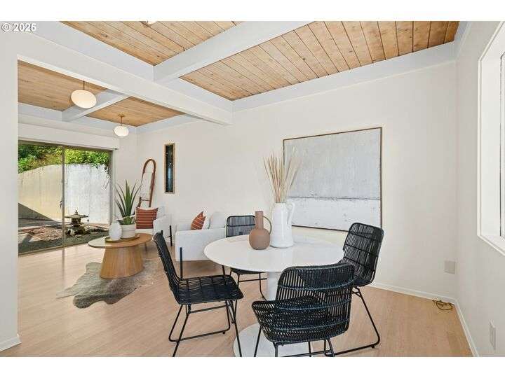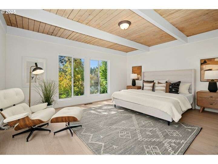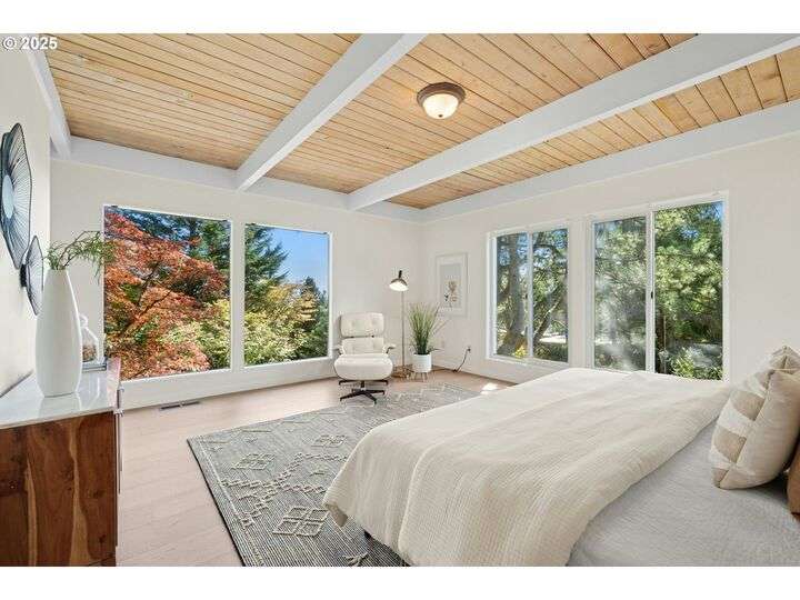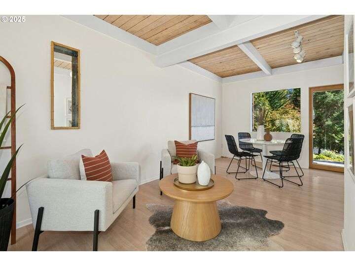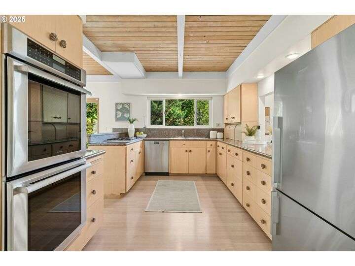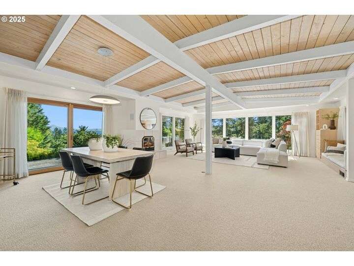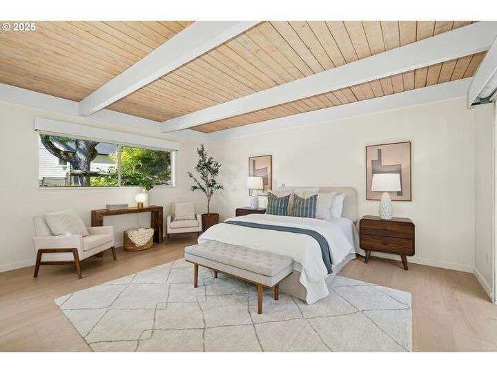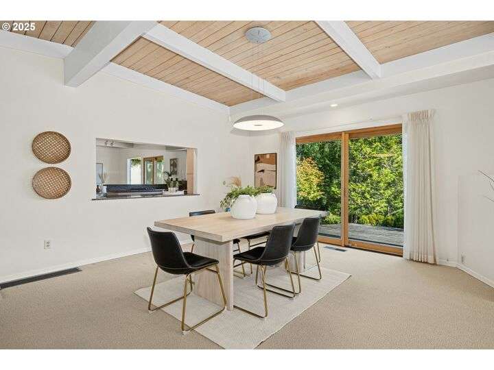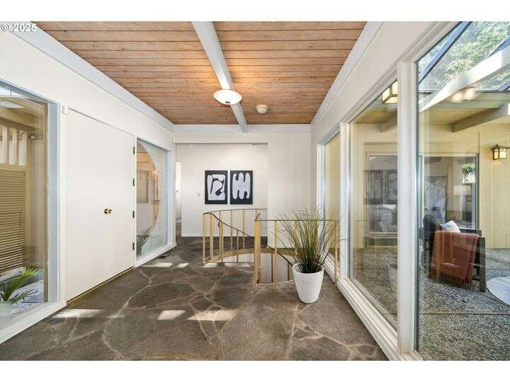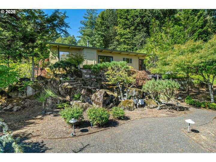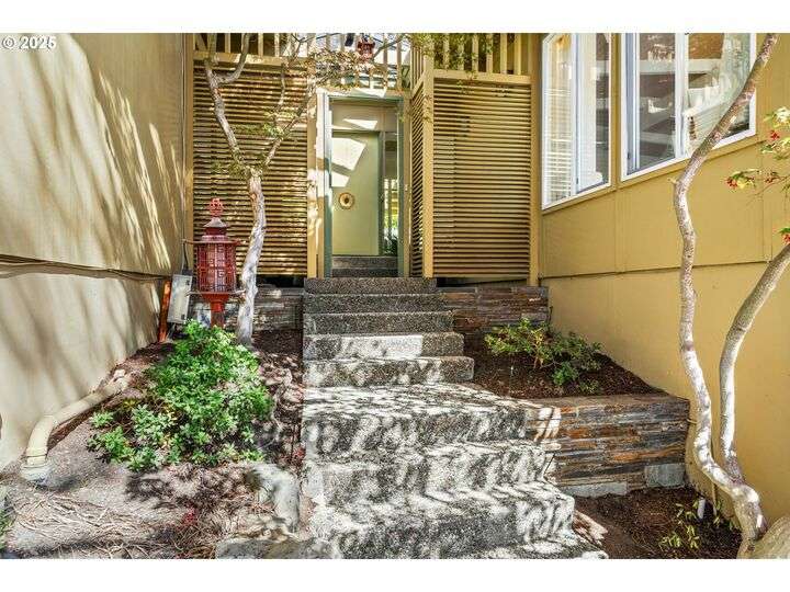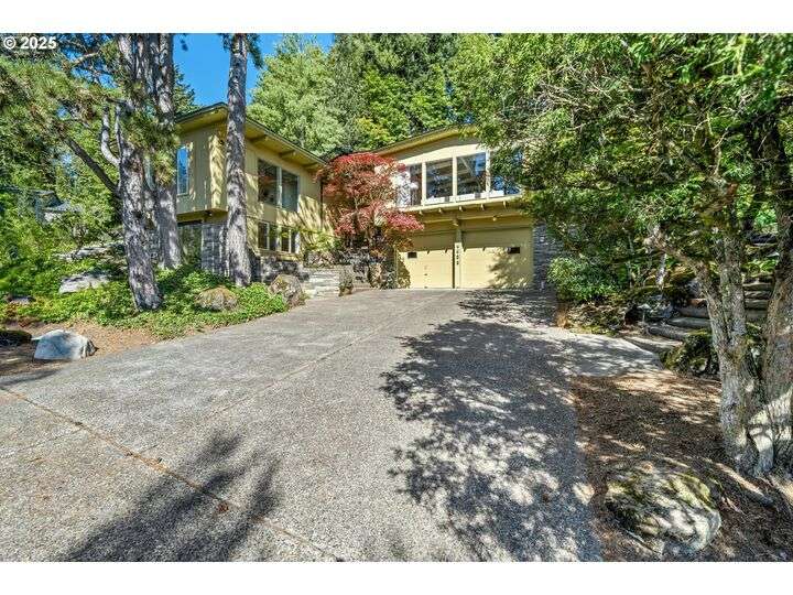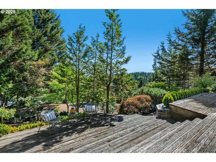 From the very first step inside, it’s clear this home is more than a place to live; it’s a celebration of an era. Set on a private double lot, the home embraces the harmony between architecture and nature, with a view of Mt. Hood as a striking backdrop to the landscape. Classic mid-century elements shine throughout— beamed ceilings, many original fixtures, and an outdoor atrium that becomes both sanctuary and showcase. The floorplan is a combination of main-level living with a spacious family room plus bonus room downstairs complemented by ample storage rooms—even a darkroom! Some rooms remain suspended in time, echoing the era’s vintage charm and inviting an opportunity for one's personal vision. For the discerning mid-century lover, this home is a rare opportunity: authentic, sophisticated, and filled with possibility. Positioned perfectly on a DOUBLE lot, surrounded by park trails, but just 5 minutes to Zupan's and the shops and restaurants of NW 23rd. This offers the perfect balance of serene retreat and urban convenience. [Home Energy Score = 1. HES Report at https://rpt.greenbuildingregistry.com/hes/OR10235031]
