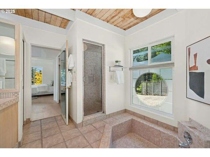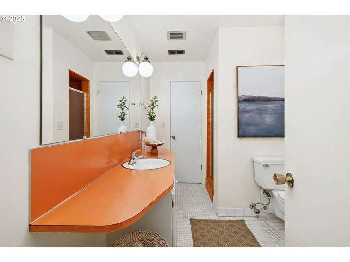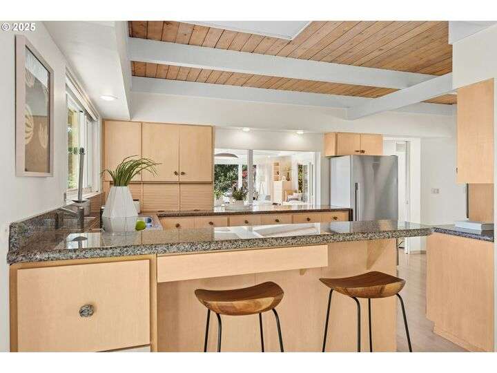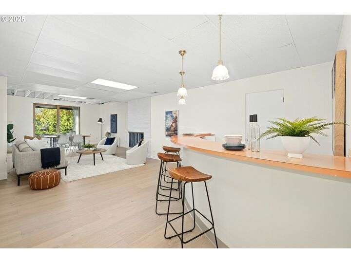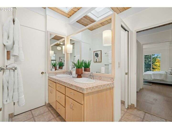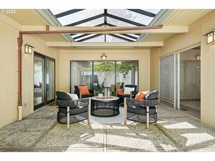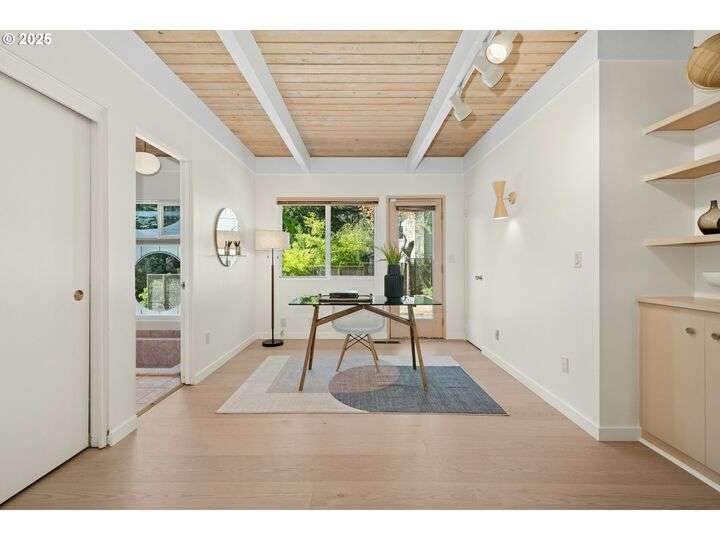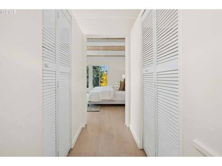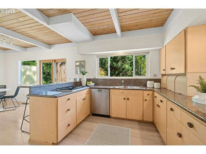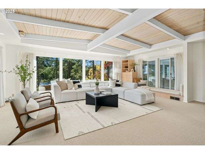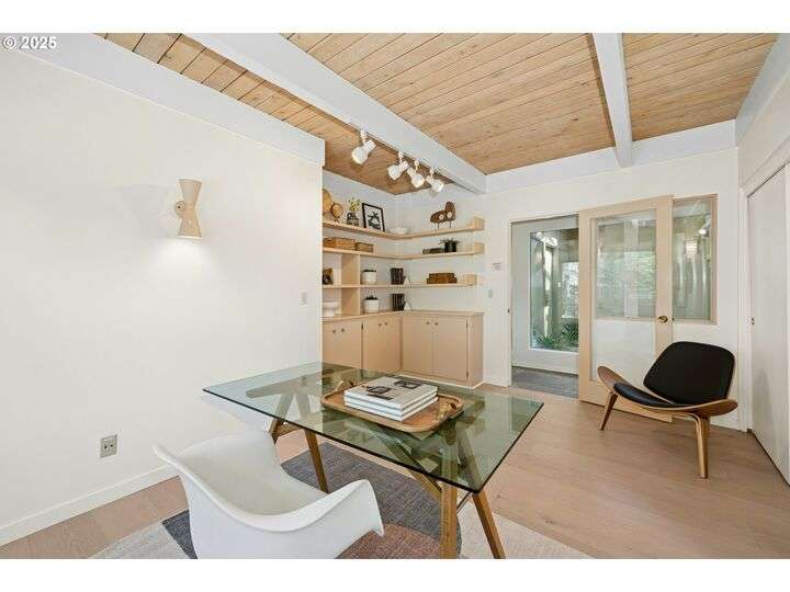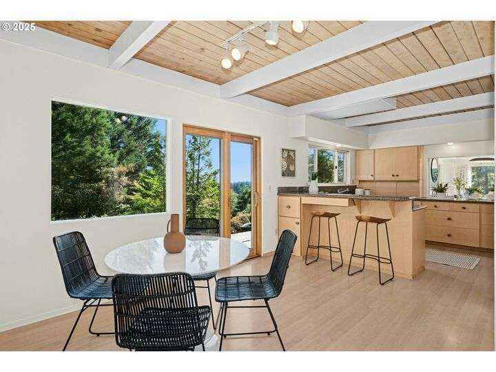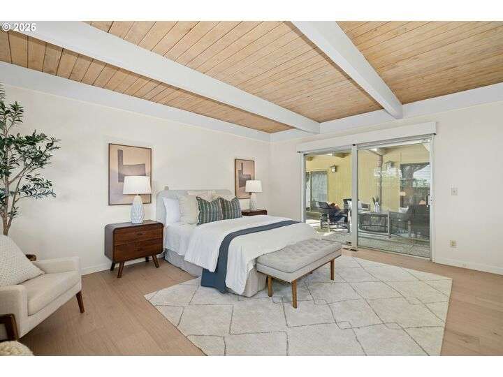 From the very first step inside, it’s clear this home is more than a place to live; it’s a celebration of an era. Set on a private double lot, the home embraces the harmony between architecture and nature, with a view of Mt. Hood as a striking backdrop to the landscape. Classic mid-century elements shine throughout— beamed ceilings, many original fixtures, and an outdoor atrium that becomes both sanctuary and showcase. The floorplan is a combination of main-level living with a spacious family room plus bonus room downstairs complemented by ample storage rooms—even a darkroom! Some rooms remain suspended in time, echoing the era’s vintage charm and inviting an opportunity for one's personal vision. For the discerning mid-century lover, this home is a rare opportunity: authentic, sophisticated, and filled with possibility. Positioned perfectly on a DOUBLE lot, surrounded by park trails, but just 5 minutes to Zupan's and the shops and restaurants of NW 23rd. This offers the perfect balance of serene retreat and urban convenience. [Home Energy Score = 1. HES Report at https://rpt.greenbuildingregistry.com/hes/OR10235031]