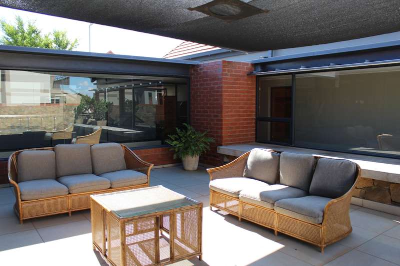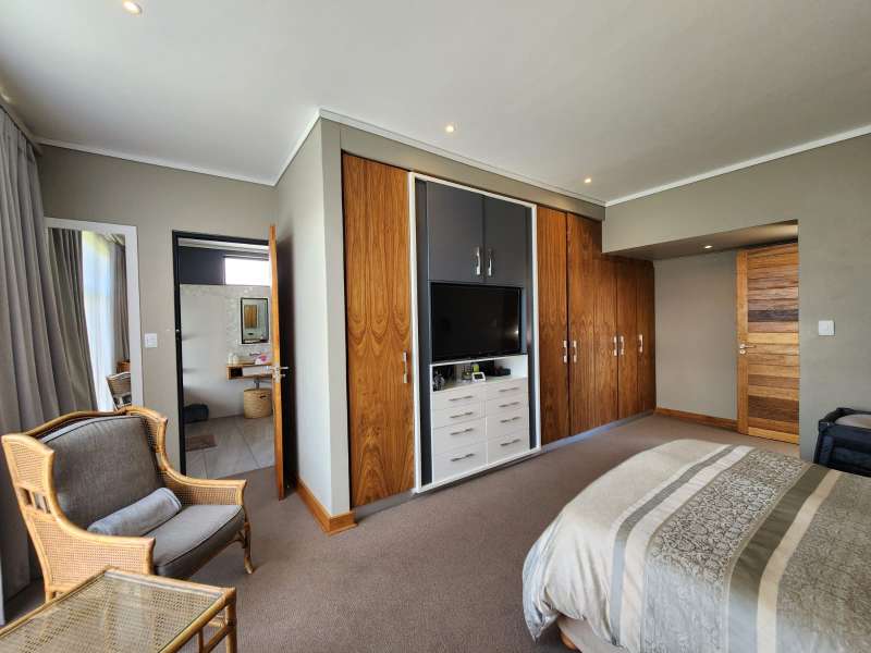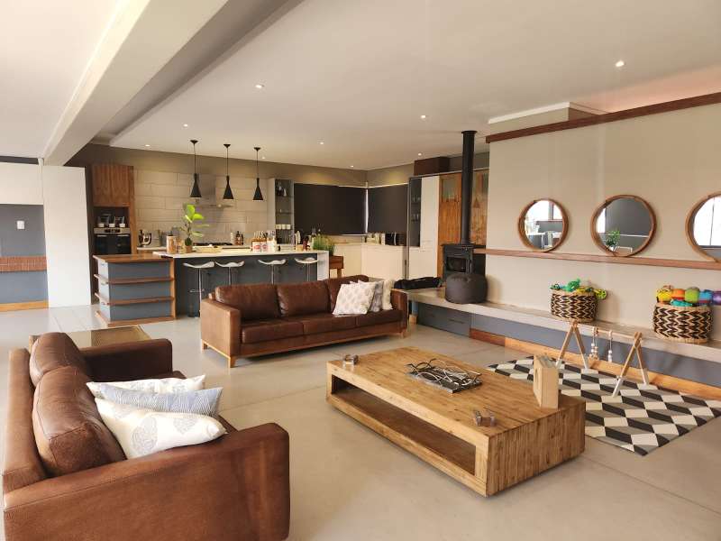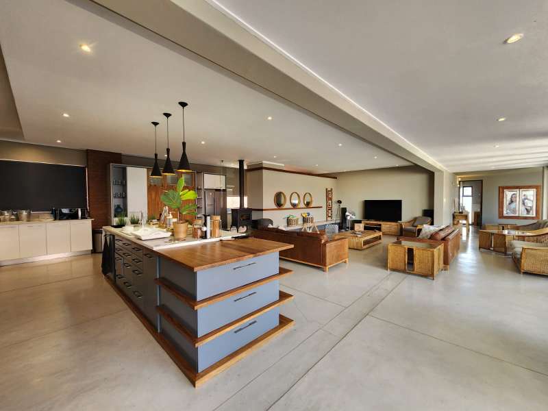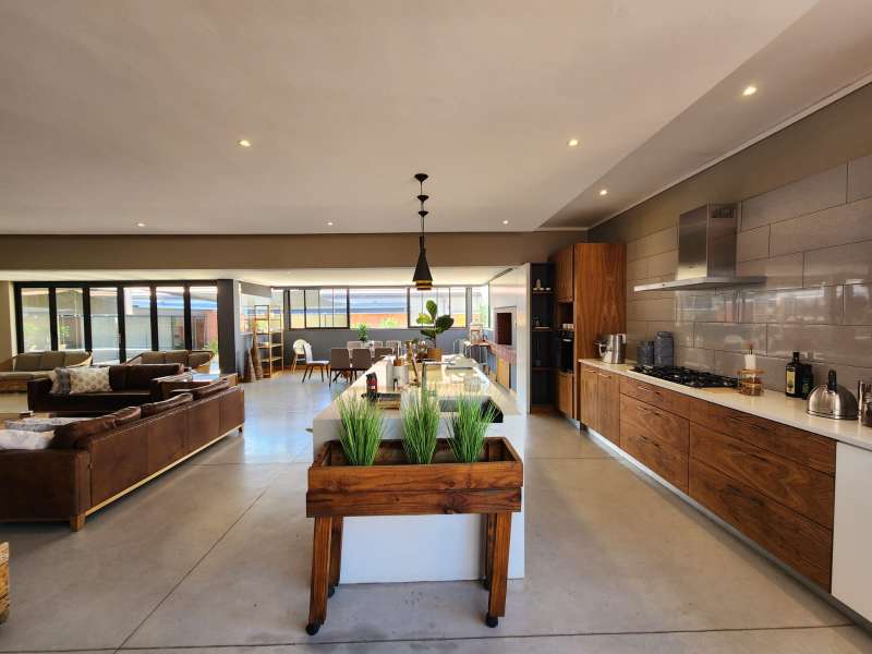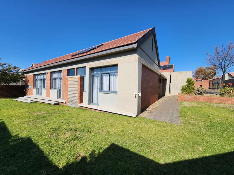 This modern masterpiece in Wild Olive Estate offers a lifestyle of sophistication, comfort, and environmental consciousness. As you step inside, you are greeted by an open-plan living and dining area adorned with abundant natural light streaming in through large windows, creating a warm and inviting ambiance. The built-in braai seamlessly connects indoor and outdoor living, perfect for entertaining guests. The expansive patio courtyard serves as an extension of the living area, providing an ideal setting for outdoor entertainment. The contemporary kitchen boasts sleek finishes, complemented by a separate scullery and laundry for added convenience. A well-appointed foyer leads to a guest toilet, providing practicality without compromising style. A dedicated study area offers a tranquil space for work or creativity. The three bedrooms are designed with both comfort and aesthetics in mind, each featuring doors that open to the yard area and patios. Experience a seamless blend of indoor and outdoor living, where you can unwind and appreciate the beauty of the Wild Olive Estate. Adding to the allure of this residence is a domestic quarter with a small kitchenette and shower, as well as a separate toilet. Practicality meets sustainability with a double garage equipped with solar panels and inverters, ensuring energy efficiency. Enjoy the convenience of pre-paid water and electricity, allowing you to manage your utilities effortlessly. Close to shops, schools, and other amenities. Don't miss the opportunity to make this architectural gem your new home!