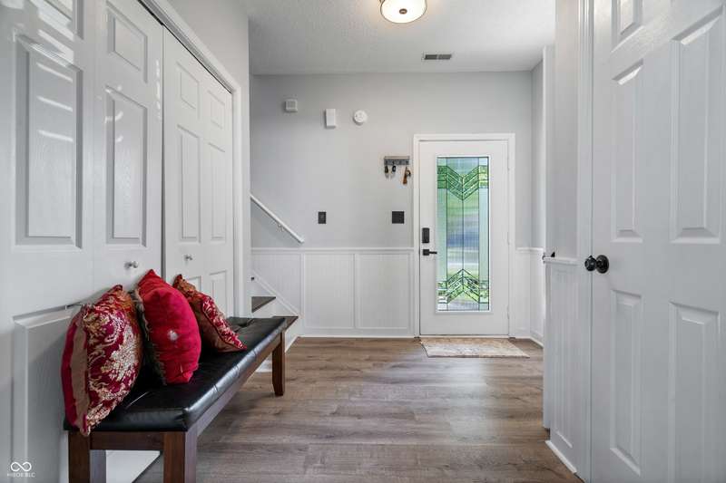 What a tremendous value in this updated home in Lawrence Township Schools! Here you will find a new roof, updated furnace, AC, and water heater, as well as a polished interior look. The kitchen features Quartz countertops, subway tile backsplash, and stainless steel appliances. The washer, dryer, and water purification system are even included! Enjoy the updated vinyl plank flooring through the main level, plus an oak staircase and solid oak hardwood flooring upstairs. Enjoy updated lighting, doorknobs, outlets, and light switches. The custom shelving system accents the living room. All of the bathrooms are also updated! Live easily in your privacy fenced backyard with concrete patio. 2 car finished garage. Call this one home today!