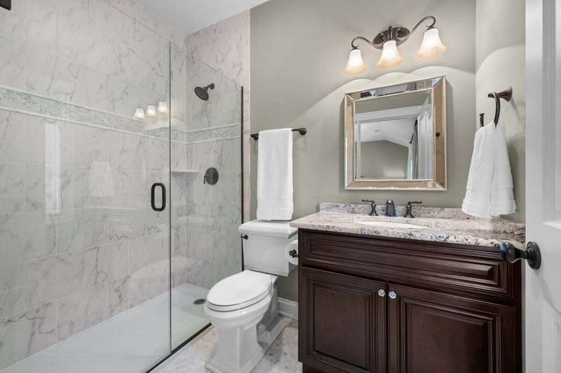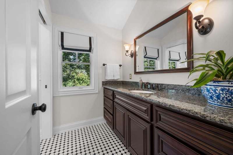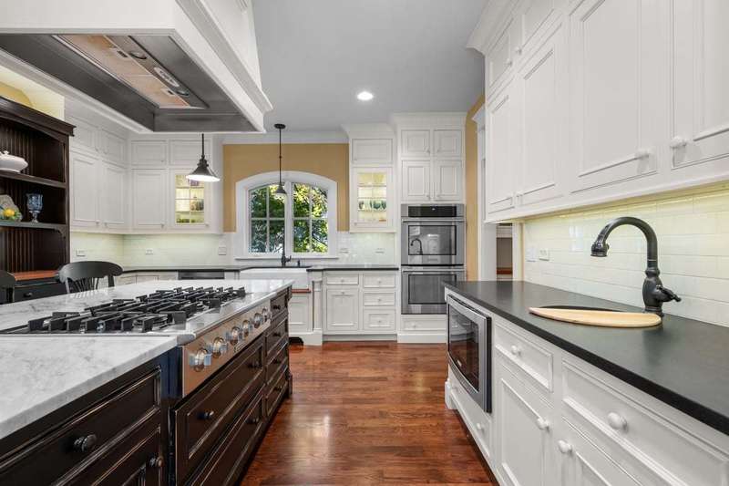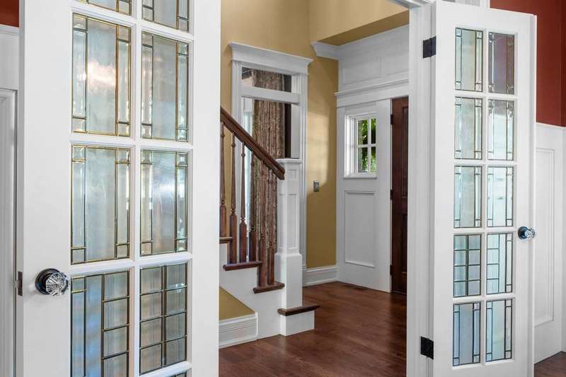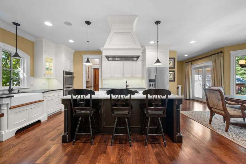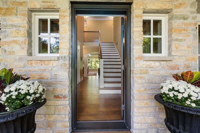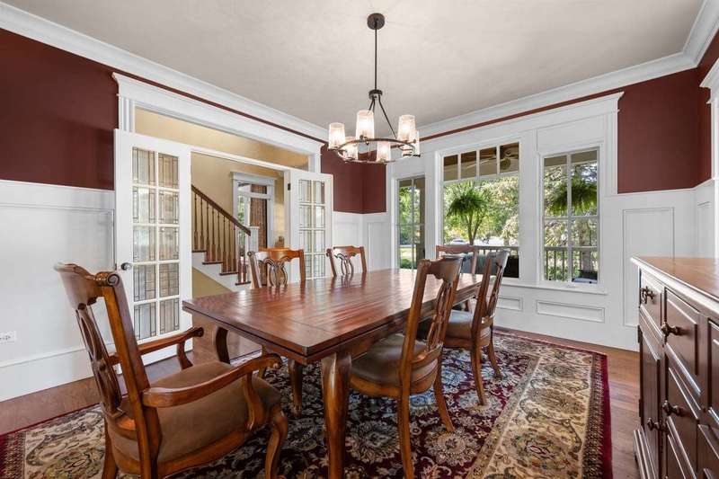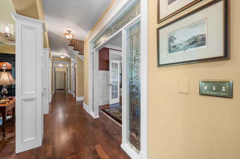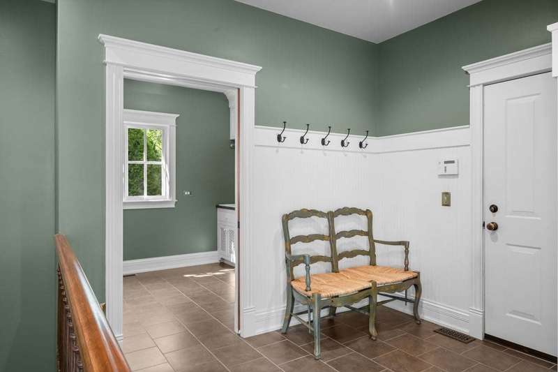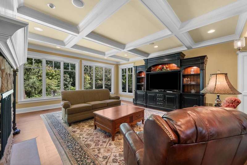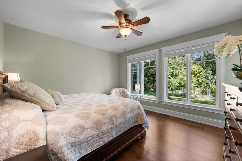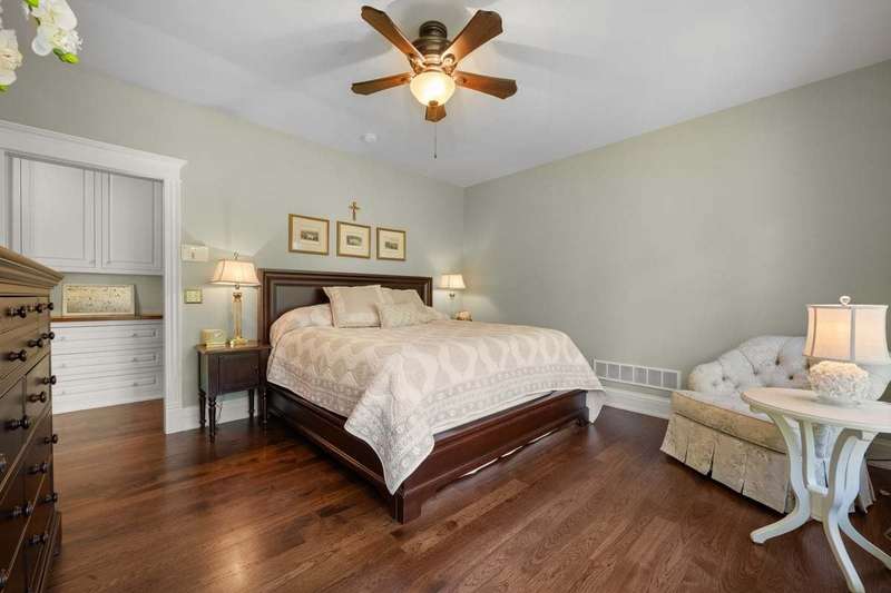 Nestled in the highly desirable Green Acres neighborhood of Naperville, this residence offers luxury living on a private .78-acre setting surrounded by mature trees. Less than a mile from downtown Naperville, this unincorporated enclave is known for its expansive lots and timeless character. The home showcases exceptional craftsmanship throughout, with custom millwork, detailed crown molding, cabinetry, and thoughtfully designed windows that fill the interiors with natural light. Hickory floors stained in a deep tone extend through the main level, stairway, and upstairs hall. The gourmet kitchen is a centerpiece, featuring honed black granite countertops, a 4' x 8' marble-topped island, and a porcelain farmhouse sink. High-end stainless steel appliances, including a gas cooktop, refrigerator, microwave, and dishwasher, complete the space. The kitchen opens into the breakfast room and living room, anchored by a two-sided fireplace. A formal dining room with French doors, leaded glass sidelights, and transom windows creates a welcoming space for gatherings, while the study at the front of the home offers a bright workspace with views of the landscaped grounds. The main-level primary suite includes a spa-like bath with a clawfoot soaking tub, dual sink vanity, and expansive glass-enclosed shower. A walk-in closet with a custom built-in system adds function and organization. Upstairs, three additional bedrooms and two full baths provide comfort and flexibility, while an unfinished space above the kitchen and garage presents the potential to create a second primary suite. The deep-pour, unfinished 9-foot basement with rough-in plumbing and large egress windows is ready for customization and features hydronic heating. A spacious laundry room adds convenience. Outside, a large deck overlooks the private, wooded yard. Car enthusiasts will appreciate the 4-car attached garage with epoxy floors and hydronic heating, as well as the outbuilding, which is prepped with two heating systems-radiant and forced heat-and finished with a wood ceiling. A Generac system provides reliable backup power. This home combines quality finishes, thoughtful design, and a prime location-offering the best of Naperville living in the exclusive Green Acres neighborhood.