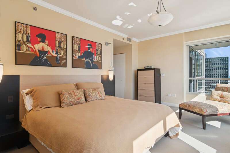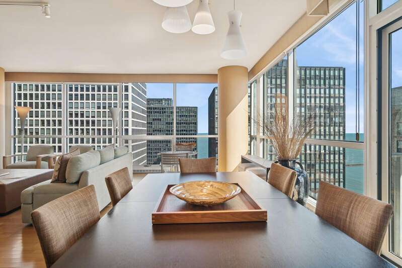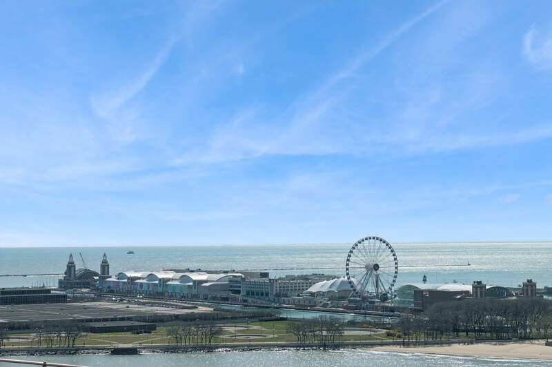 RARELY AVAILABLE CORNER UNIT with FLOOR-TO-CEILING WINDOWS framing stunning views of LAKE MICHIGAN, NAVY PIER, and LAKE SHORE PARK. This 1,900 SQ FT 2 BED / 2.1 BATH home at THE PEARSON offers an expansive open layout flooded with NATURAL LIGHT. Beautifully finished with HARDWOOD FLOORS throughout, GRANITE COUNTERS, STAINLESS STEEL APPLIANCES, and upgraded cabinetry. Spacious living/dining area ideal for entertaining. Oversized PRIMARY SUITE features a WALK-IN CLOSET, a soaking tub, and DOUBLE VANITY. Enjoy IN-UNIT LAUNDRY! Full-amenity building with 24-HOUR DOOR STAFF, FITNESS CENTER, ROOFTOP SUNDECK, PARTY ROOM, BIKE STORAGE, and on-site management. Steps from the LAKEFRONT TRAIL, MCA, and all the best of STREETERVILLE. Assessment includes HEAT, A/C, CABLE & INTERNET. TWO ASSIGNED PARKING SPACES (170/171) $50k!
