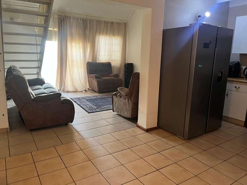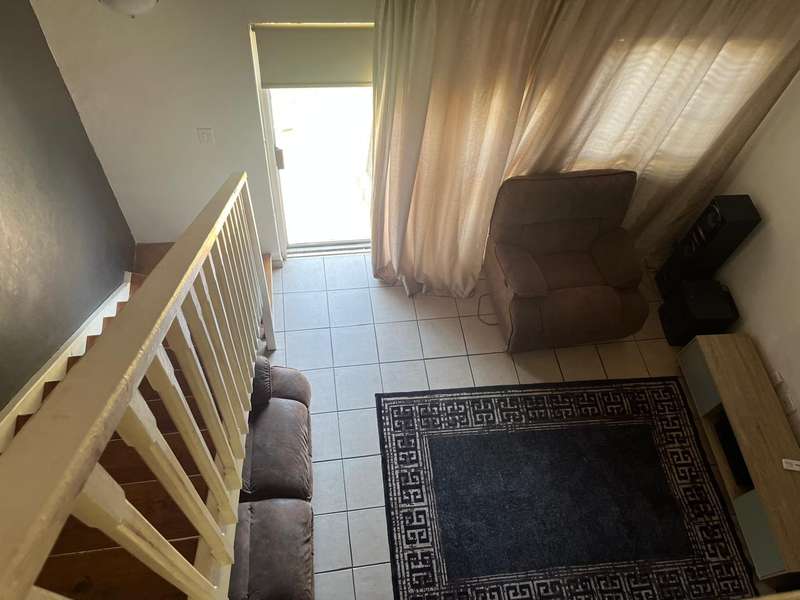 This duplex is in Midrand Ridge which is well located. The duplex is freestanding with a sizable garden and pet friendly. The unit has a kitchen with space for a large fridge and two undercounter appliances. The living area is open plan with space for a separate dining area as well a large lounge area. The living area leads onto a private garden. You have two bedrooms downstairs and a bathroom . The bedrooms are tiled with b.i.c. There is a wooden staircase leading upstairs to another living area as well as an en-suite bedroom with a walk in closet. The complex is well managed and close to many shopping centers, schools, creches, and quatrain bus route. There is a covered parking bay and ample visitors parking available. The unit is in need of some tlc. While every care has been taken in the preparation of this listing, we cannot be held responsible for any errors or omissions that may have inadvertently occurred. The information contained in the listitng is subject to updates and/or changes.