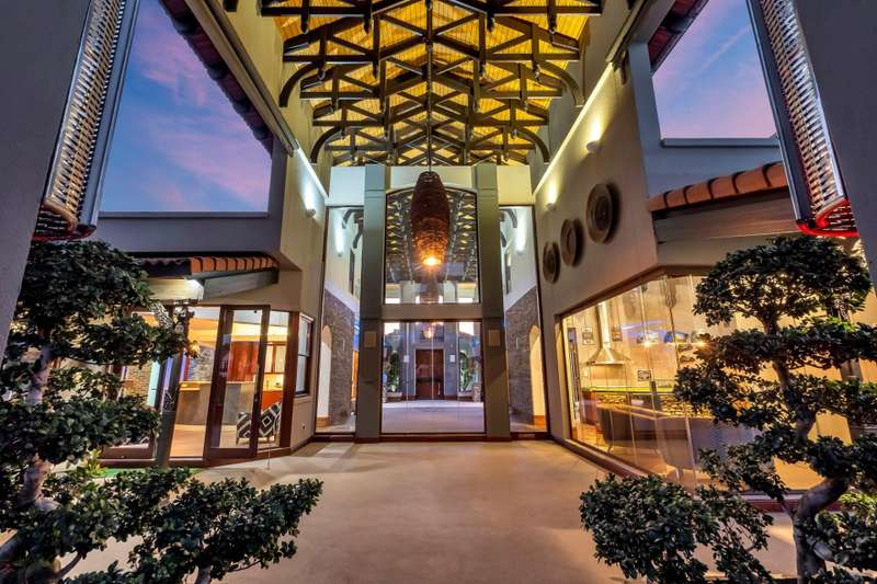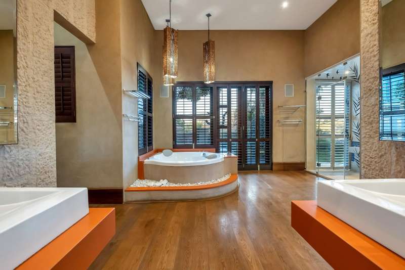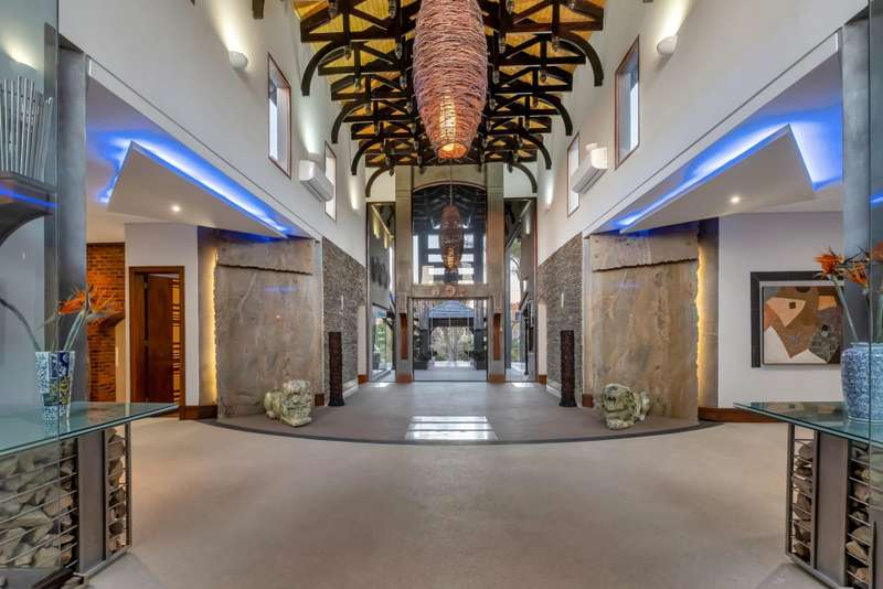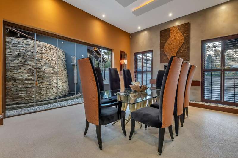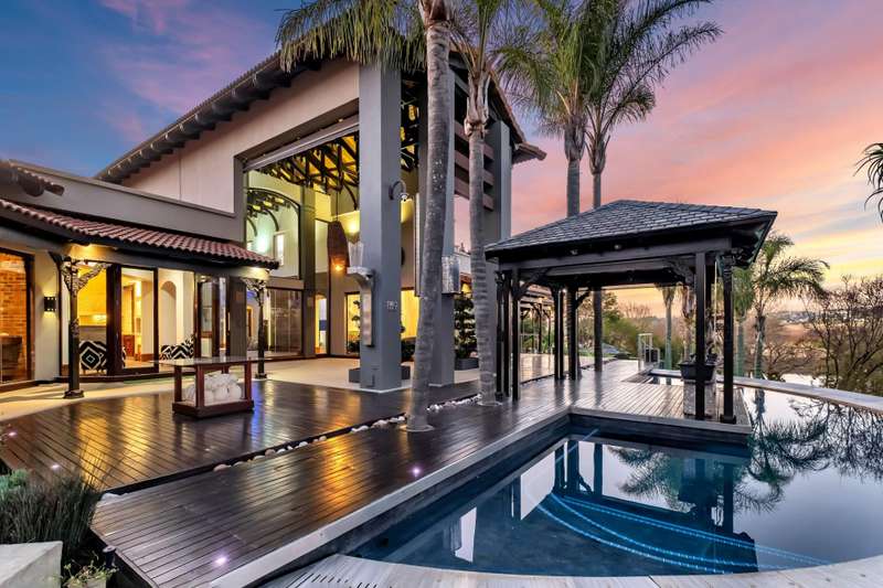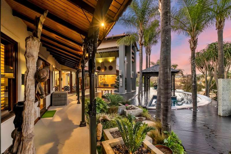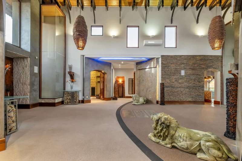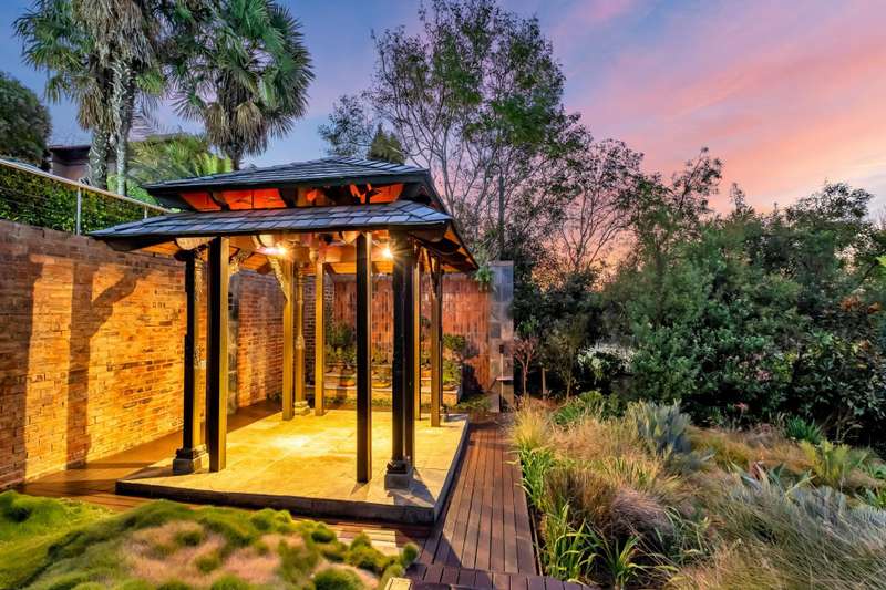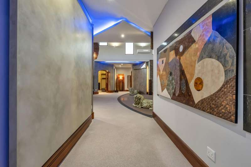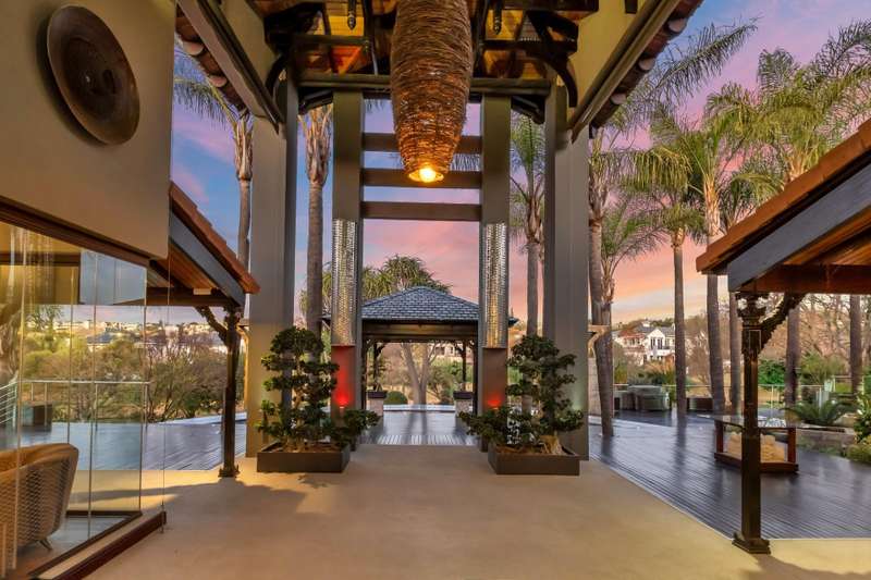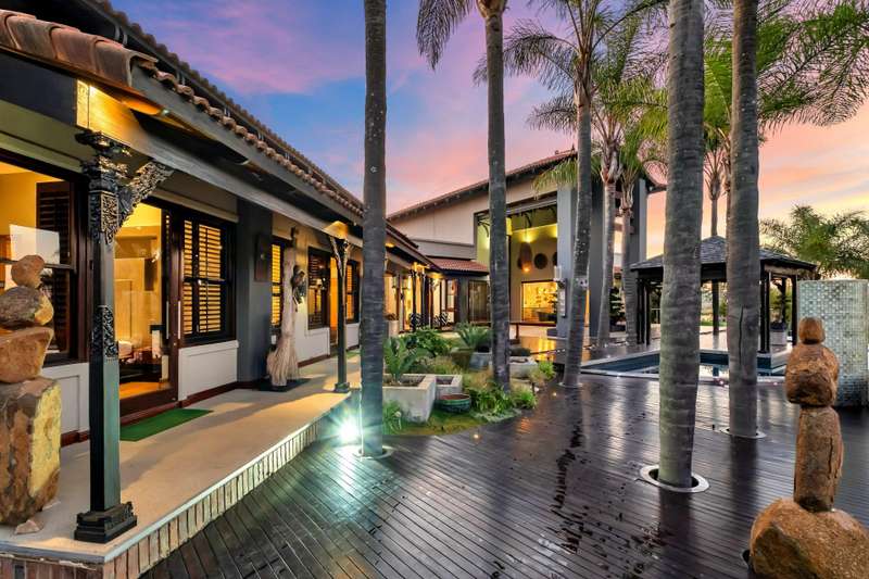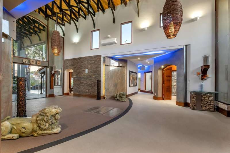 Step into a world of tranquil sophistication with this exceptional and authentic Balinese-inspired residence, where every detail evokes the serenity and artistry. Set a sprawling stand that rolls gently down towards the river, this expansive home offers a rare combination of privacy, indulgent finishes, and resort-style living. A dramatic double-volume entrance, framed by soaring dark wood beams, sets the tone for this remarkable property. Hand-carved Balinese pillars, an ornate front door, and curated artefacts create an immersive experience of Eastern-inspired luxury from the moment you arrive. The four Exquisite bedrooms and fifth as part of a cottage are all 5 star accommodation. The main en suite is a private sanctuary, thoughtfully set apart from the rest of the home. Featuring a built-in oversized bed beneath a detailed open-beam ceiling, fireplace, and a luxurious bathroom with Jacuzzi bath and shower, this retreat flows effortlessly to a secluded patio through expansive stacker doors. Two additional en suite bedrooms boast floor-to-ceiling glass walls with uninterrupted views of the pool and entertainment area. A fourth guest bedroom offers quiet seclusion, while the fifth bedroom suite is a fully independent studio-style retreat?Çöideal for guests or as a private home office, with its own exterior access. The formal lounge, framed by floor-to-ceiling glass, gazes out onto an indigenous water feature, infusing natural calm into the heart of the home. A private cinema room and a spacious games room with adjoining cellar provide multiple areas for refined relaxation and entertaining on a grand scale. The resort-style entertainment area is anchored by a sprawling swimming pool and a serene covered oriental gazebo, perfect for al fresco dining or sunset lounging. Lush landscaped gardens extend down to the river, offering a setting of rare natural beauty and peace. Additional Features ?Çó 6 Garages ?Çó Multiple fireplaces throughout ?Çó Open frontage river access ?Çó Large solar power inverter system ?Çó Numerous water tanks ?Çó Estate-level privacy and security This home is more than just a residence?Çöit's an experience. Perfect for the discerning buyer seeking a one-of-a-kind lifestyle, this masterpiece offers the ultimate in elegance, privacy, and timeless charm.