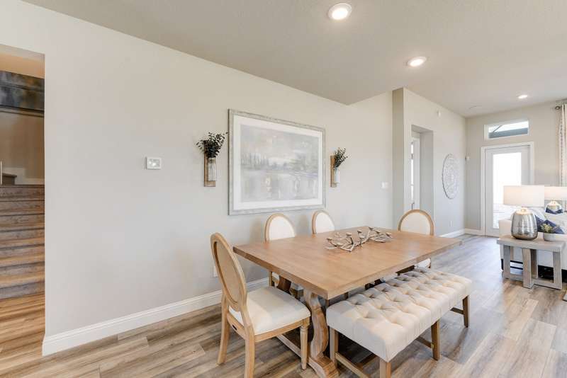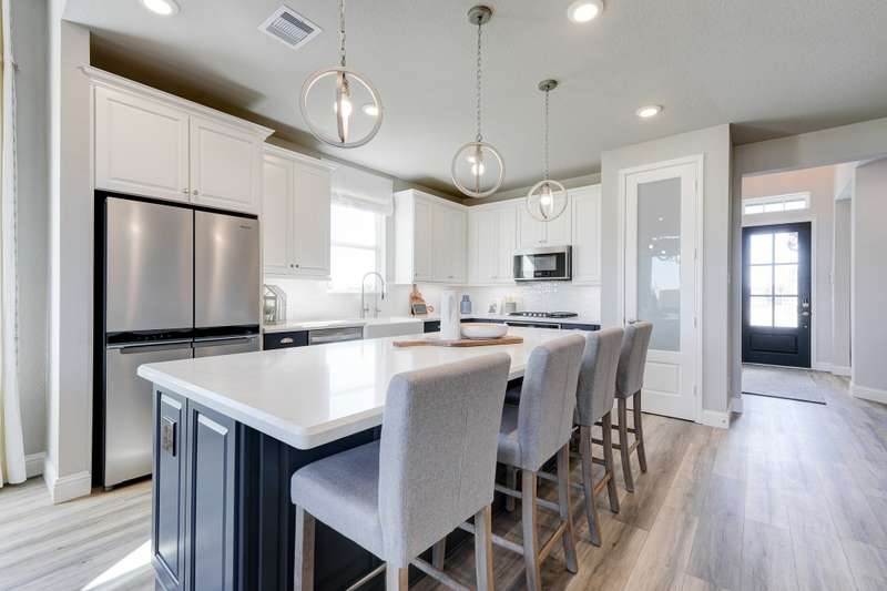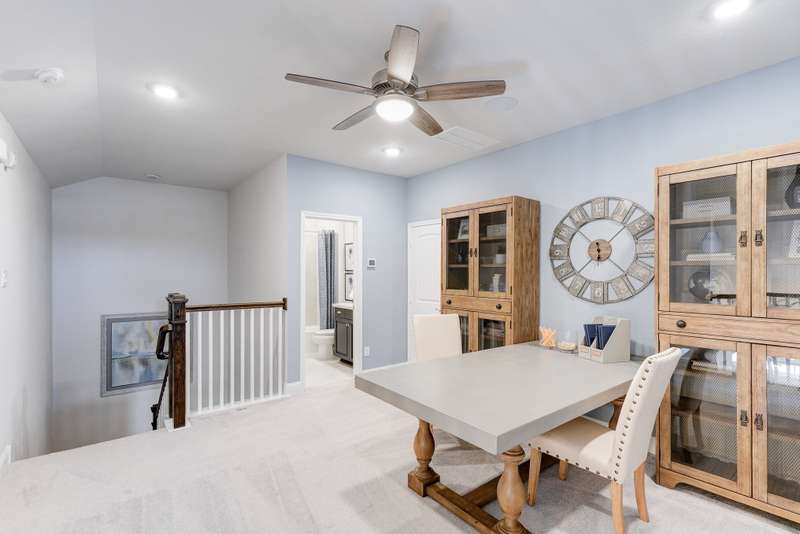Welcome to the Grand Rouge in The Highlands! This north-facing 2-story home offers 3 beds, 3 baths, 1,979 sq. ft., and sits on a cul-de-sac. Features include 10' ceilings, 8' doors on the main floor, quartz countertops, wood-look tile in main areas, pendant lighting, a kitchen sink under the window, and an extended covered patio. Upstairs, the loft is perfect for an office or game room. The spa-inspired primary bath offers a soaking tub and separate shower. Built as a DOE Zero Energy Ready Home™, it's ENERGY STAR® certified and Indoor airPLUS qualified—designed to be up to 50% more efficient than a typical new build. Located in The Highlands, a 2,300-acre community with golf, pool, lazy river, fitness center, and trails. Ask about our limited-time interest rate!