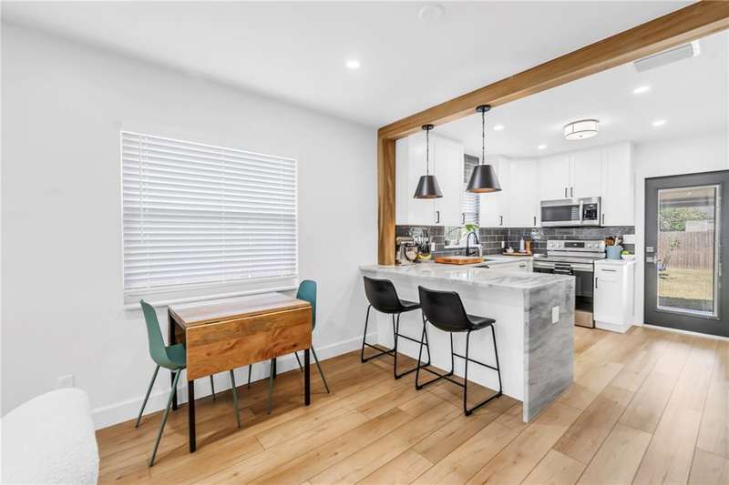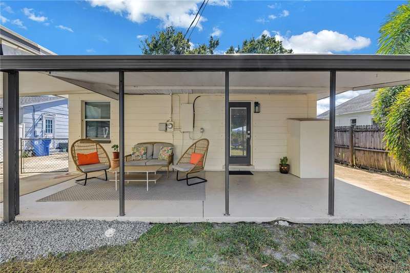 Available for annual rental 11/15/2025! This BEAUTIFULLY REMODELED single family home features 2 bedrooms, 1 bathroom, and detached 1 car garage. The owner's spared no expense when updating this property with luxury vinyl plank flooring, chef's kitchen with stainless steel appliances, and high-end fixtures. The detached garage has a window A/C unit creating a versatile space for a workshop or bonus room. The expansive backyard has a large covered area and is fully fenced-in making it an ideal outdoor space. Dogs are allowed with non-refundable deposit and owner approval. Rent INCLUDES lawn care and pest control. Some furnishings may be available for purchase/lease.