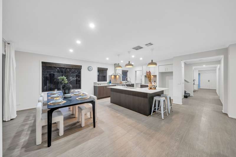 Showcasing exceptional craftsmanship and thoughtful design, this impressive 5-bedroom residence is the ideal haven for families who value both style and convenience. Perfectly positioned in one of Williams Landing's most sought-after pockets, you'll enjoy unrivalled lifestyle benefits-just a short stroll to Williams Landing Train Station, Shopping Centre, local parks and wetlands, Explorers Early Learning Centre, with easy freeway access and close proximity to Westbourne Grammar School. From the grand double-door entrance to soaring ceilings and premium stone finishes, this dual-level home strikes the perfect balance between elegance and everyday comfort-a home you'll be proud to call your own. Key Features • Spacious Family Living – A welcoming study/formal lounge at the front, sun-drenched open-plan living and dining flowing seamlessly to a huge undercover alfresco, plus a dedicated home theatre at the rear. • Guest Retreat Downstairs – A private guest bedroom with built-in robe, serviced by a full bathroom, offering comfort and convenience for extended family or visitors. • Gourmet Designer Kitchen – An entertainer's dream with extended stone island bench, walk-in pantry, and premium Bosch appliances including dishwasher, gas cooktop, oven and rangehood. • Luxurious Master Suite – Generous master bedroom upstairs with walk-in robe, private ensuite, and balcony access-your peaceful sanctuary. • Family Comfort – Three additional bedrooms (one with WIR, two with BIRs) serviced by a stylish central bathroom featuring a bathtub and separate toilet. • Ample Storage – Thoughtfully designed laundry with yard access, understairs storage, and multiple linen cupboards throughout. • Outdoor Entertaining – A fully decked undercover alfresco, perfect for year-round entertaining and family gatherings. • Secure Parking – Remote-controlled double garage with internal and external access, plus exposed aggregate driveway. Premium finishes and extras include stone benchtops throughout, central heating and cooling, LED downlights, quality flooring, solar hot water system, oversized showers, side gate access, and so much more. This exceptional home ticks all the boxes-space, style, and location. Simply move in and start enjoying the lifestyle you've been dreaming of. Contact us today: Haresh Mutreja | 0430 095 116 Di Zhu ?? (Mandarin ?? & English) | 0410 911 167