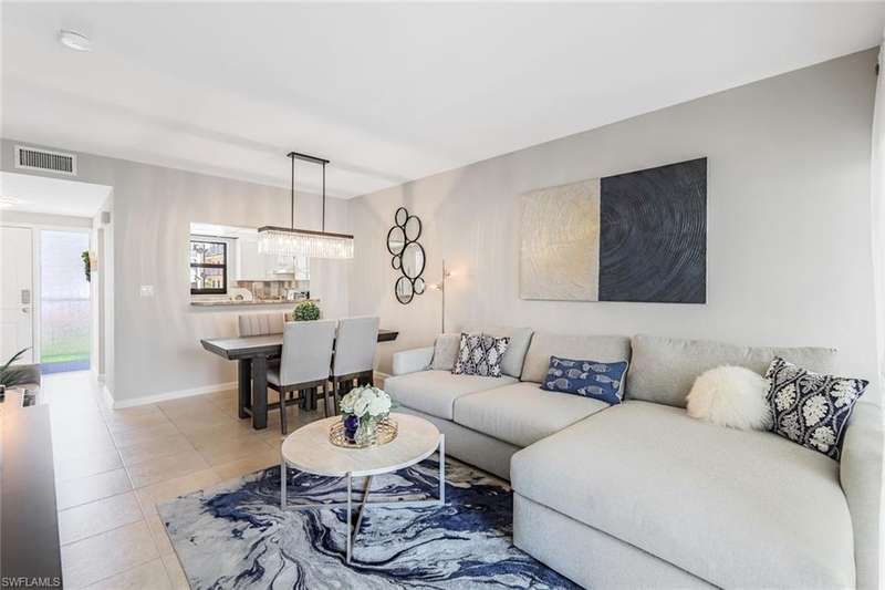 PREMIER LOCATION!!! Walking distance to famous 5th Ave, Tin City, Old Naples and white sandy beaches. Fine dining, boutique and antique stores, performing arts, car shows, art fairs right on 5th Ave, free concerts at Cambier Park, all of it just steps away. Beautifully furnished with BRAND NEW FURNITURE and faces due south over Naples Bay and every serene sunset. Living/ dining room combo, glassed in Florida room, laundry room and covered carport is right out your door. New HVAC, brand new high impact resistant windows and European shades, new paint throughout, new light fixtures, new flooring in the second bedroom. Community includes large, heated pool and hot tub and a covered patio area with gas BBQ grills, there's also a bike storage. BOAT DOCKS right out your door can be rented from the private owners' of River Pointe Marina.