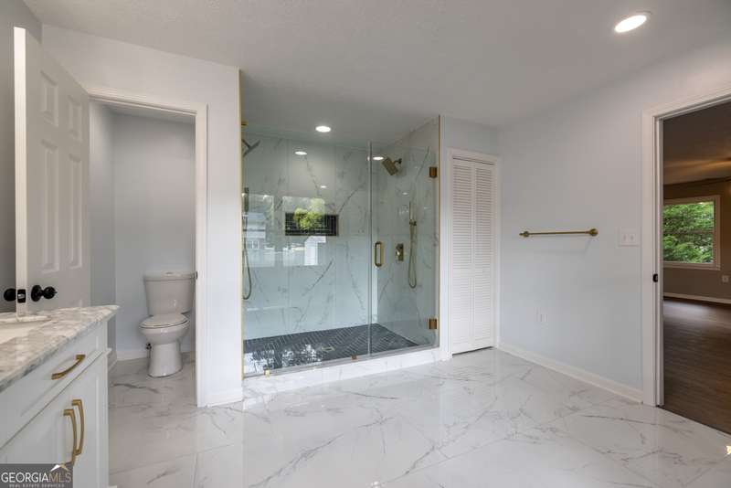 Completely remodeled brick ranch just steps from Cherokee Golf Course! This 3-bedroom, 2-bathroom home is move-in ready with all new paint, flooring, light fixtures, plumbing fixtures, doors, tankless hot water heater, and brand-new roof. The updated kitchen features granite countertops, stainless-steel appliances, and lots of cabinet space. The oversized primary suite features a large walk-in closet and a luxury tile bathroom with a 6-foot double shower, frameless glass shower door, double vanity and gold accents. The home also offers a convenient 2-car attached garage with utility room perfect for storage or a workshop. Outside, enjoy fresh landscaping, a level open yard, and an outbuilding for extra space.