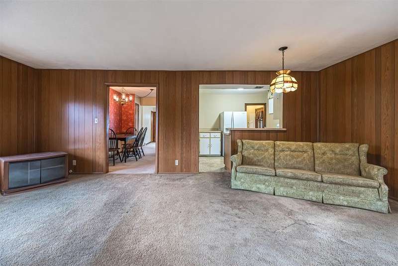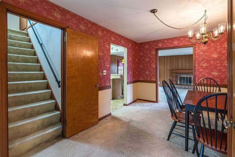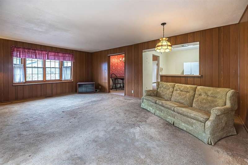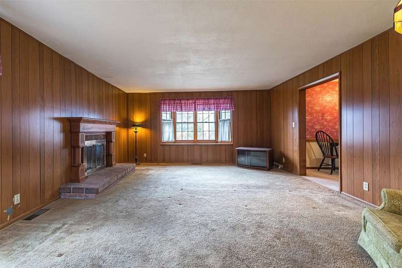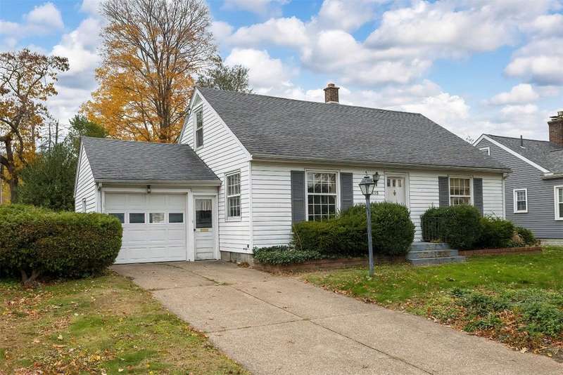 Spacious Cape Cod tucked away in Lakewood subdivision. Rich looking woodwork throughout! Inviting living room and formal dining room. The kitchen opens to a cozy wood paneled family room featuring a bay window and fireplace with wood mantle. The first floor includes two convenient bedrooms and a full bath, offering flexible living options. The lower level is plumbed for a full bath, providing potential for future expansion. Step outside to enjoy the private backyard and rear patio, great for outdoor dining or quiet relaxation. A one-car attached garage adds to the home's convenience. Close to local parks and all that Lakewood has to offer!