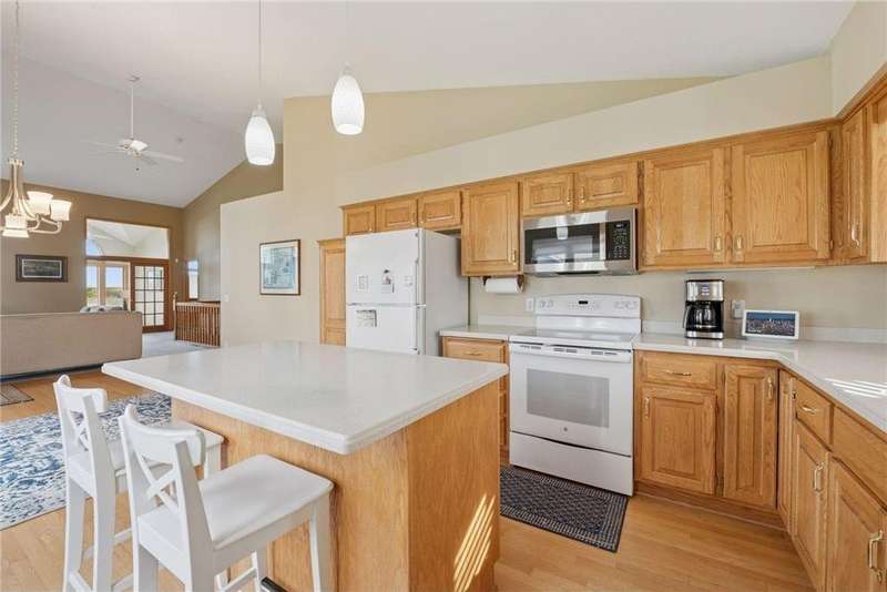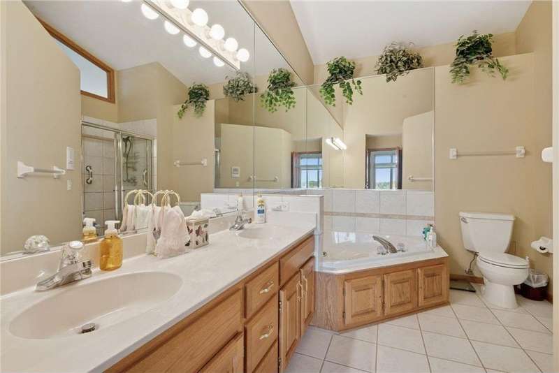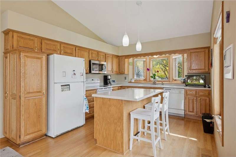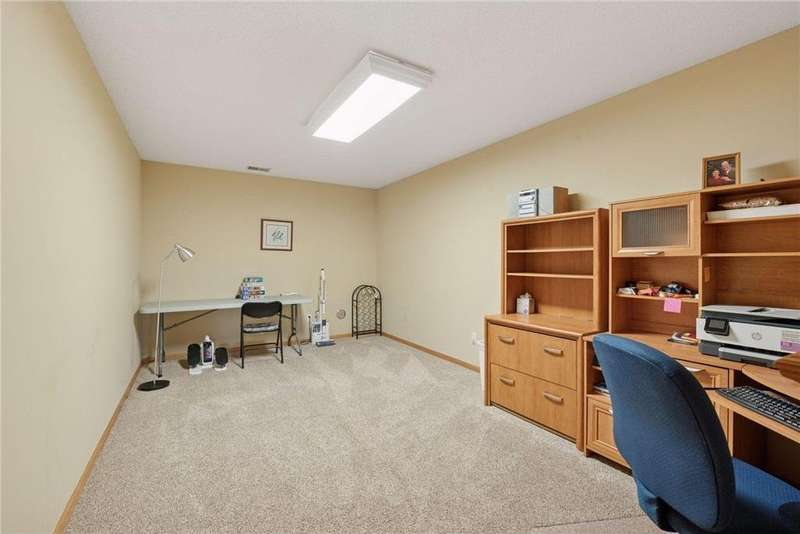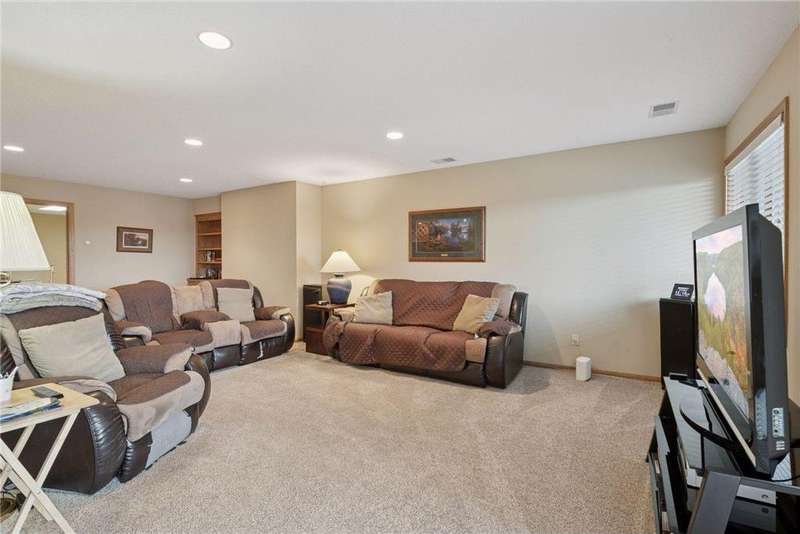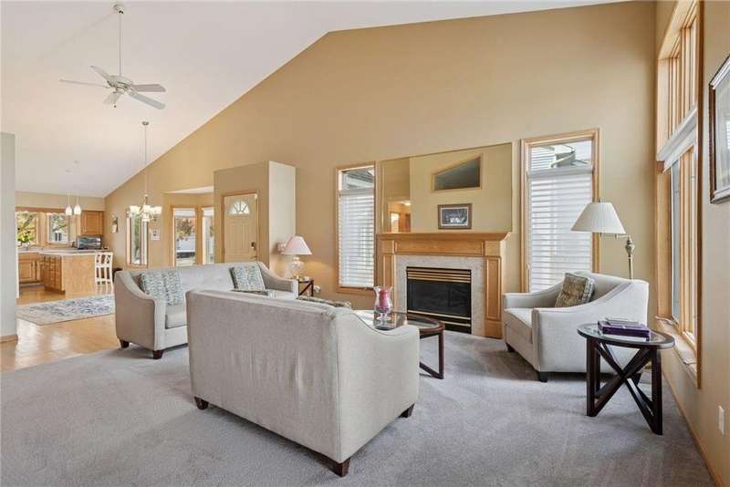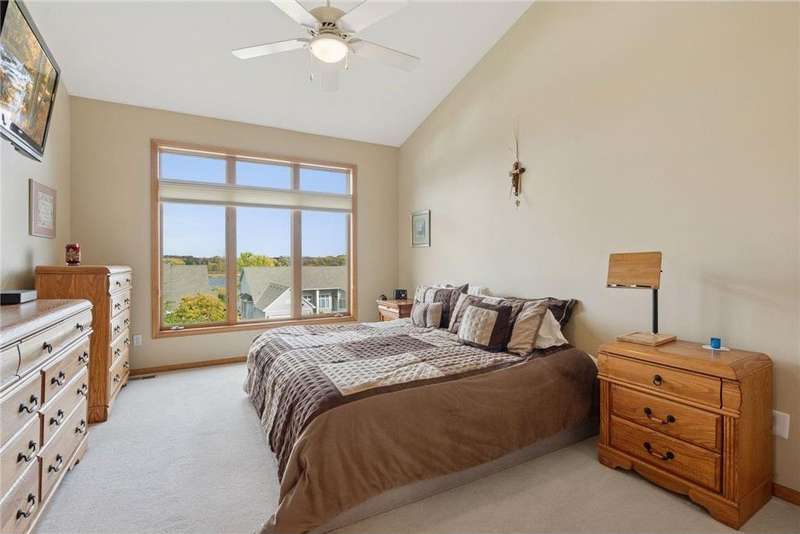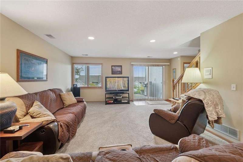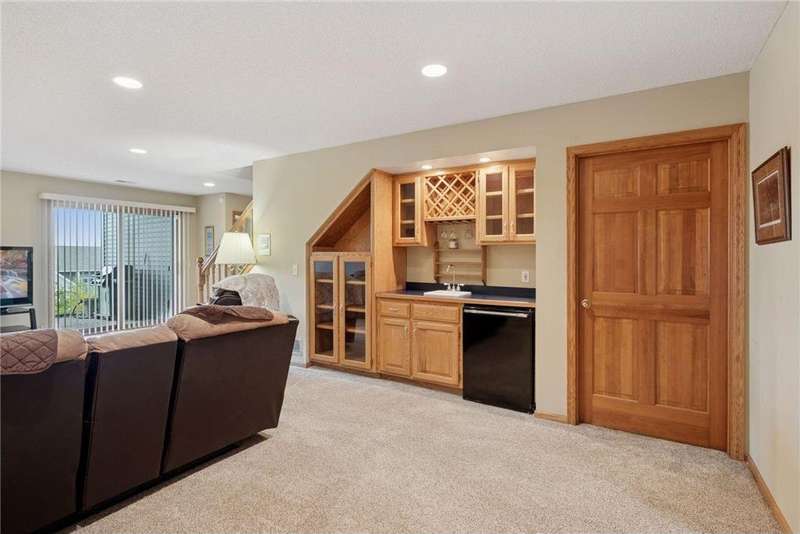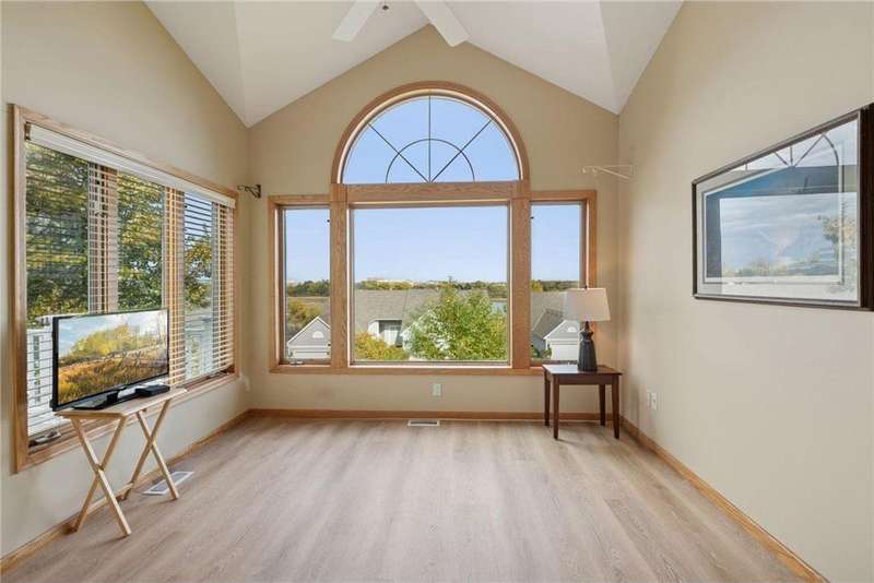 Tucked away in a peaceful enclave of just 58 homes along the shores of Anderson Lake, this beautiful walkout rambler townhome feels like a hidden retreat. From the moment you step inside, you'll notice the soaring vaulted ceilings & feel the sunlight shining through the walls of windows, filling every space with warmth & wonderful views that change with the seasons. The heart of the home is a welcoming center-island kitchen with Corian counters, that flows effortlessly into open, airy living spaces, perfect for entertaining family & friends. The vaulted sunroom opens to the spacious deck with dramatic panoramic views, while the main-level owner's suite offers a spa-like escape. There is also a convenient main floor laundry room with lots of built in cabinets & a handy utility sink. The lower level invites relaxation with a cozy family room, wet bar, guest suite & flexible office that could also be a third bedroom with the addition of an egress window. Outside, the partially covered 19x11 patio overlooks the peaceful backyard. Recent improvements include a refreshed deck with Trex decking & Timber Tech railing in 2022, the replacement of all main level window sashes/glass (side & Back in 2020 & front in 2015) & a new Hardie Plank front exterior (which all units had done) in 2017. You'll love the location within walking distance of the Eden Prairie Mall & you're just minutes from restaurants, groceries, entertainment & the future light rail!