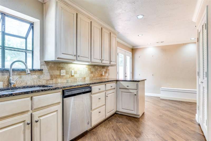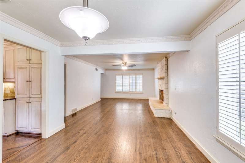 Light and Bright freshly painted. This Preston Hollow ranch style home. Large stone Fireplace in Living Room. Hardwood floors through out.Plantation Shutters. Kitchen is full of amenities. Ceiling fans in rooms. Wood Deck overlooks large fenced back yard and trees. Two car detached garage.Circle Drive in front for easy access to home.