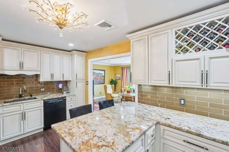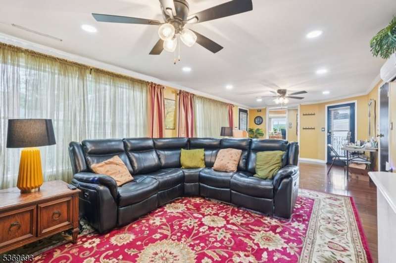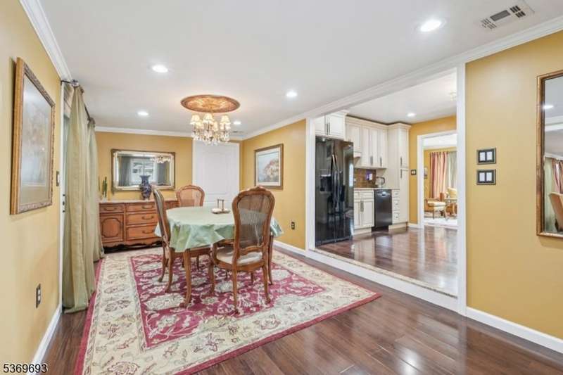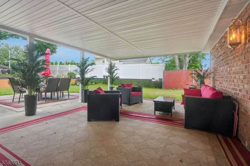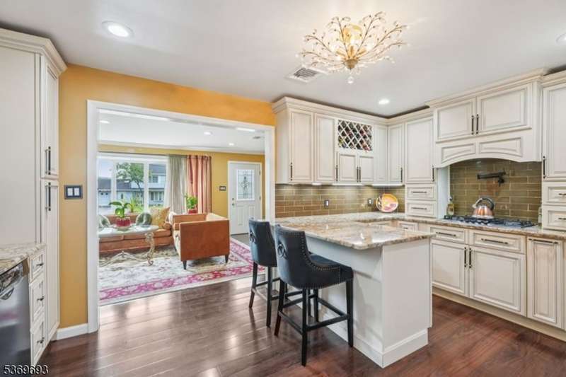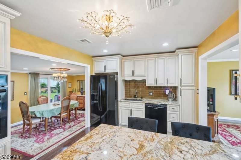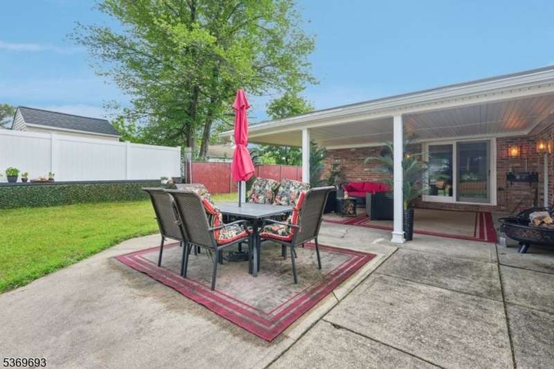 Welcome home to this well-maintained Expanded Ranch nestled on a beautifully landscaped lot. Enjoy the ease of one-floor living in a home that blends comfort, style, and function. Step into the spacious living room featuring large windows, crown molding, and a welcoming atmosphere perfect for relaxation and conversation. A wide cased opening leads into the beautifully updated kitchen, boasting custom cabinetry, granite countertops, black stainless appliances, and bar stool seating. The kitchen flows into the dining room an ideal space for intimate meals or lively gatherings. Sliding glass doors open to a covered porch and patio, perfect for grilling and al fresco dining. Off the living room, the cozy family room offers a wood-burning fireplace, large windows. The side entrance welcomes guests with a covered entryway. The primary bedroom features a large closet, while a second bedroom and two full bathrooms one with a laundry area complete the home. The fully fenced, level backyard is perfect for entertaining, with ample space for outdoor dining, gardening, and summer fun under the covered patio. An oversized 1-car garage, generous driveway parking and attic storage add convenience. Enjoy peaceful living with close proximity to shopping, dining, parks, and NYC transportation everything you need just minutes away.