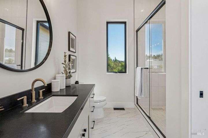 Stunning new custom home in Fountaingrove with sweeping views of the golf course and Lake Nagasawa. This thoughtfully designed 3900 sq. ft. residence offers 4 bedrooms, 4.5 baths and a versatile bonus room. The main level showcases a chef's kitchen with premium stainless steel appliances, oversized island, and a back kitchen/pantry with second prep sink, all opening to the spacious great room with walls of windows framing the views. The luxurious primary suite features a spa-like bath, walk-in closet, private patio access, and incredible vistas, while a junior suite provides comfort and privacy for guests. The lower level offers a large bonus room, 2 bedrooms, 2 full baths and direct access to a covered patio for indoor/outdoor living. Nearly 1,300 sq. ft. of covered outdoor space creates the ultimate retreat, complete with outdoor kitchen and BBQ, dining area, and multiple seating zones perfect for entertaining or relaxing as the sun sets. A 3-car garage and extensive custom built-ins add convenience and functionality. Just steps to The Fountaingrove Golf & Athletic Club with easy access to Hwy 101 and Mark West Springs Rd, this is Wine Country New Home living at its finest.