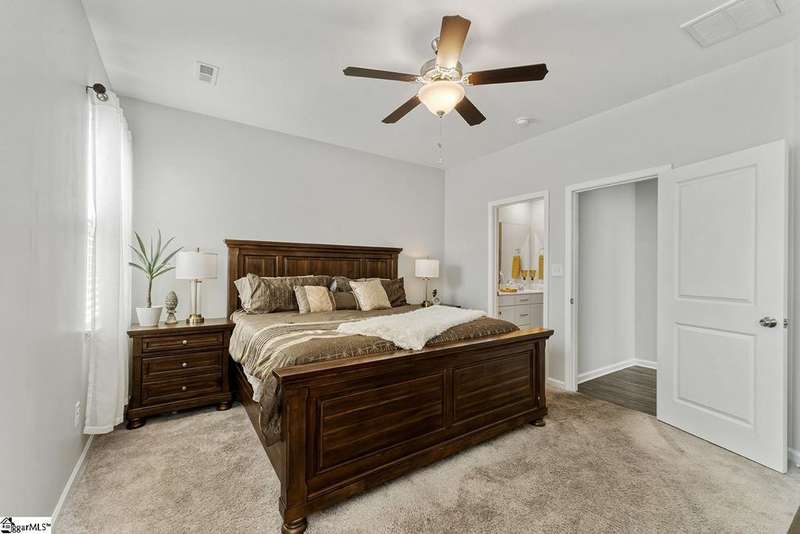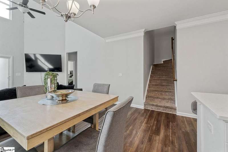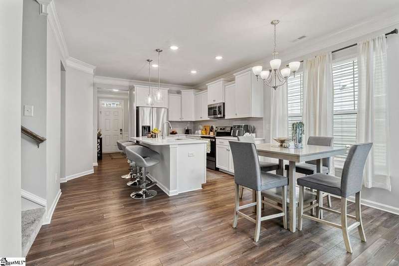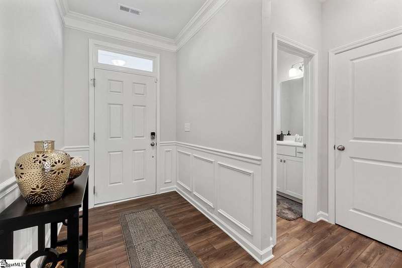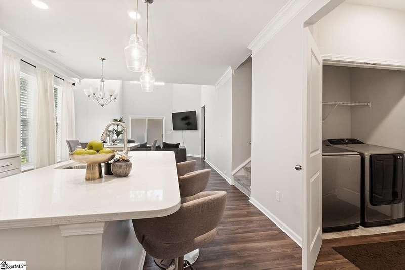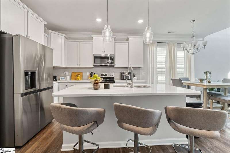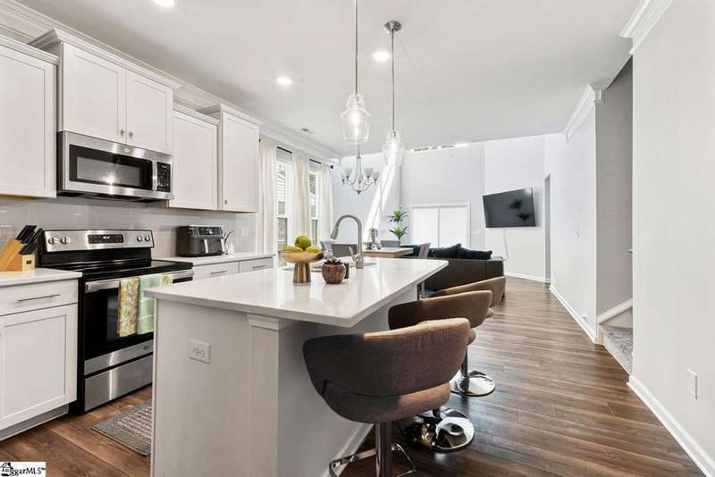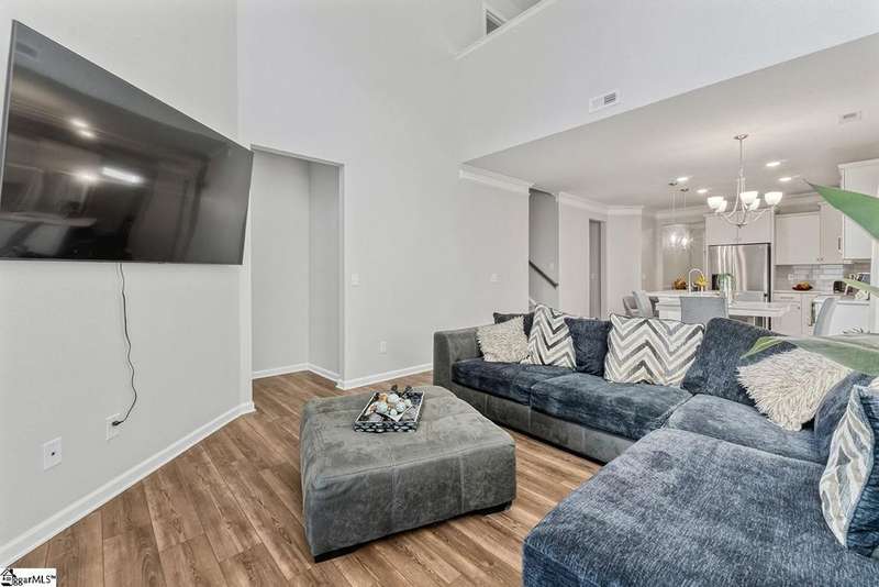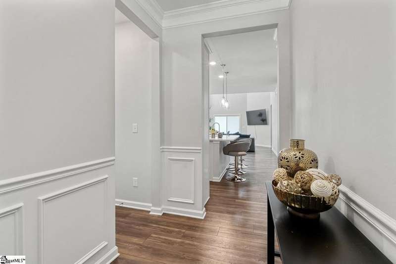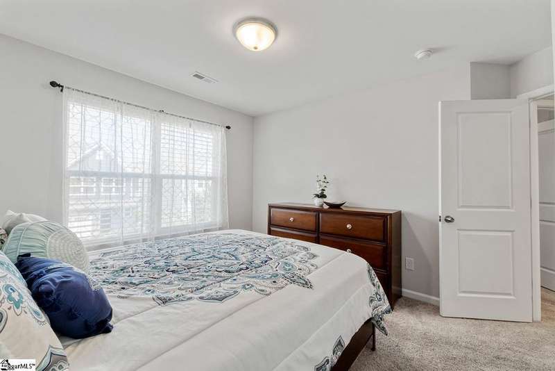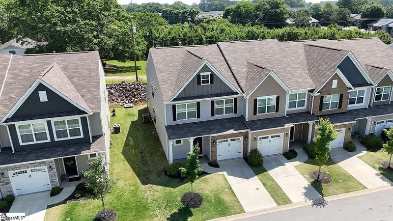 Welcome to this charming community just minutes from vibrant Downtown Simpsonville, with easy access to Greenville and all the Upstate has has in store?where convenience meets comfort in a move-in? MOVE-IN READY ? NEW CONSTRUCTION FEEL WITHOUT THE CONSTRUCTION ZONE! This beautifully finished 3-bedroom, 2.5-bath townhome with a 1-car garage is waiting for its new owner, offering all the benefits of new construction without the noise, dust, or unfinished streets. Located on a COMPLETED BLOCK, this NEWLY PAINTED, STEAM CLEANED CARPETS TURNKEY HOME is ready for you to move right in! OPEN CONCEPT *** Perfectly situated near shopping, dining, and everyday conveniences, this home offers both comfort and an unbeatable location! The thoughtfully designed layout features Crown Molding and Craftsman Wainscoting in its defined foyer that flows into the open kitchen, dining area and living room, and a two-story great room flooded with natural light. The loft overlooks this bright, airy living room and the versatile 9?18 FLEX ROOM upstairs is perfect for an office, guest space, or hobby area where two bedrooms and bathroom separated by a loft area. Plantation blinds and ceiling fans complement every room. The PRIMARY SUITE ON THE MAIN FLOOR boasts a luxurious bath with a large tiled double walk-in shower, double vanities, tiled flooring, and a spacious walk-in closet. The chef's kitchen shines with quartz countertops, designer backsplash, LED disc lighting, pendant fixtures, upgraded cabinetry, stainless-steel appliances?including an extra-large microwave?and luxury vinyl plank flooring in the main living areas, soft close cabinetry throughout, while the bedrooms feature soft, plush carpeting. All appliances convey?including a washer and dryer, only two years old. Additional highlights include a rear covered porch for relaxing afternoons, upgraded lighting and plumbing fixtures, structured wiring for today's technology, a finished garage with outlets and overhead lighting, and a built-in pest control system for added convenience. Don't miss out?schedule your private tour today and experience everything this beautiful home has to showcase!