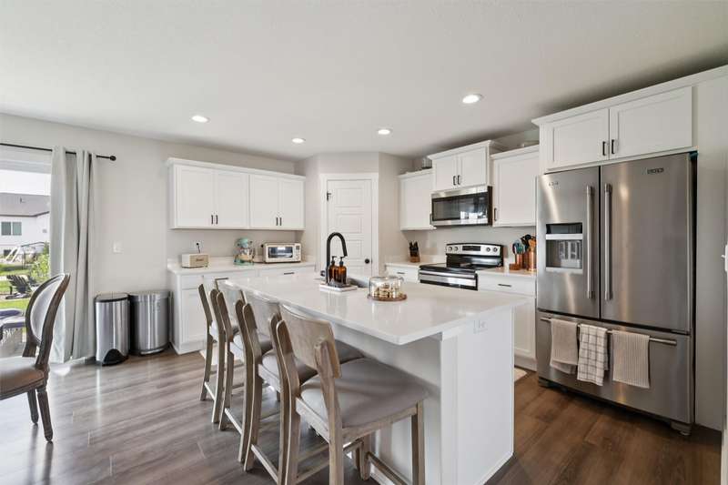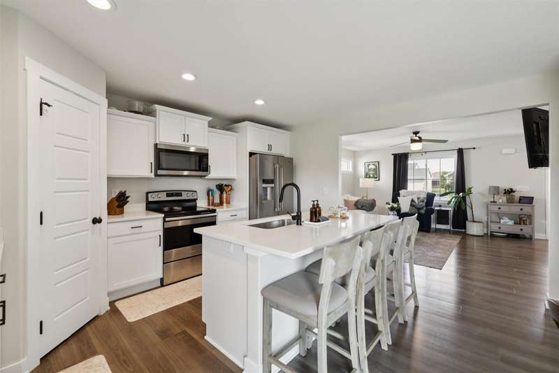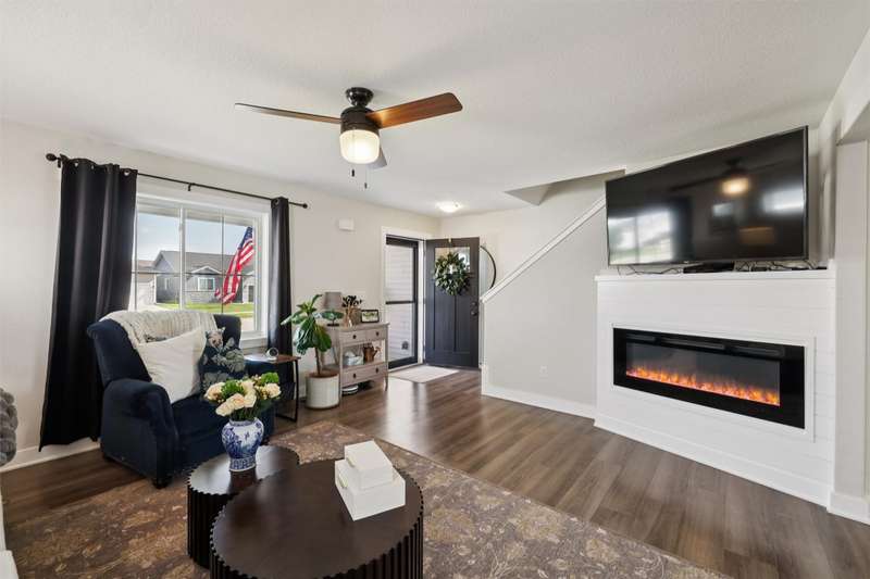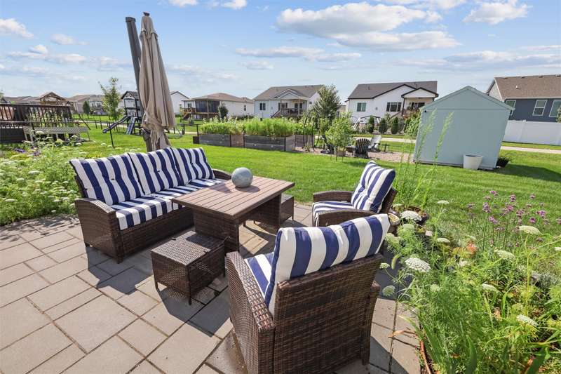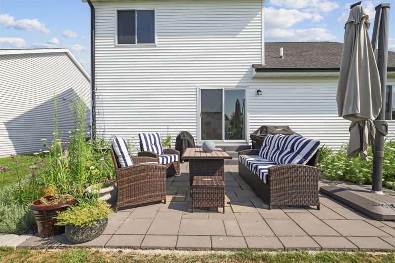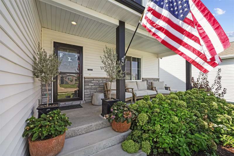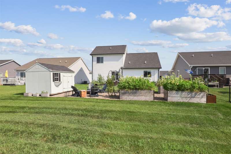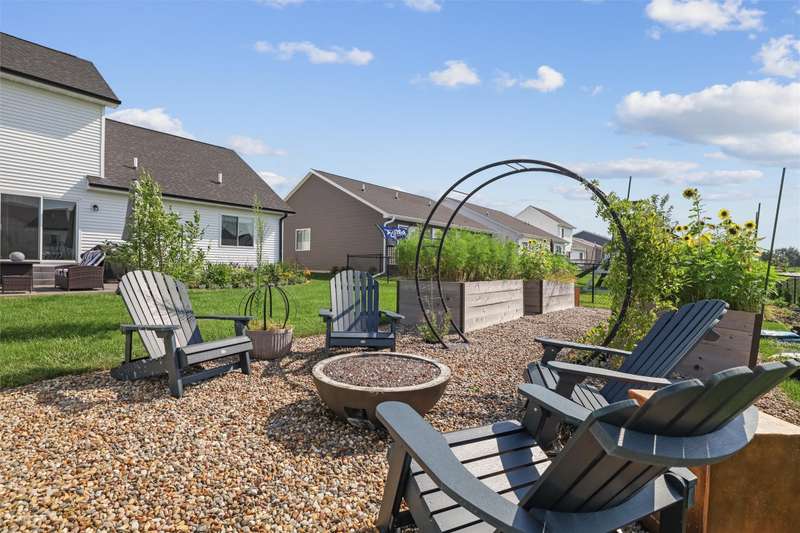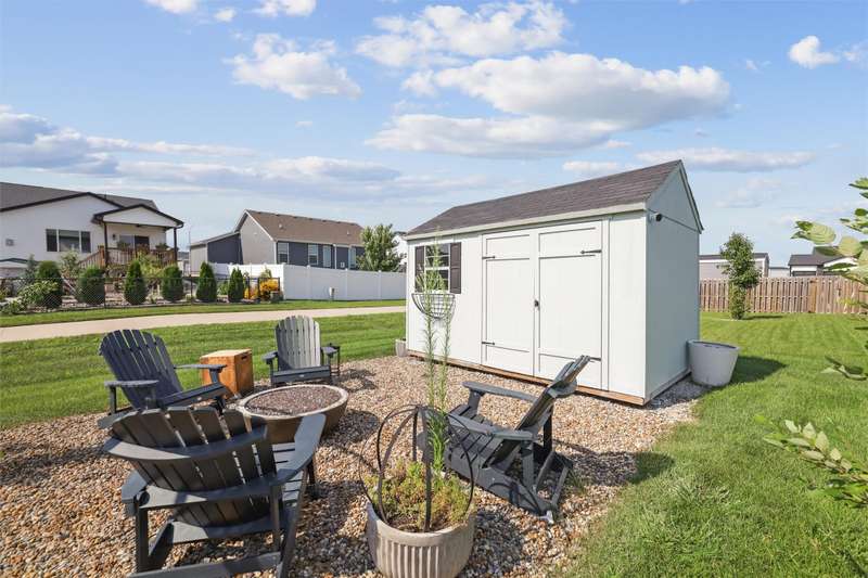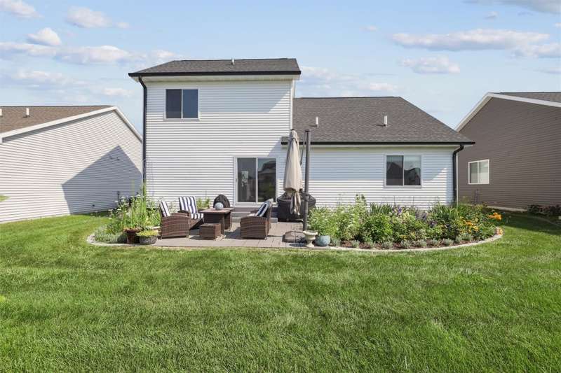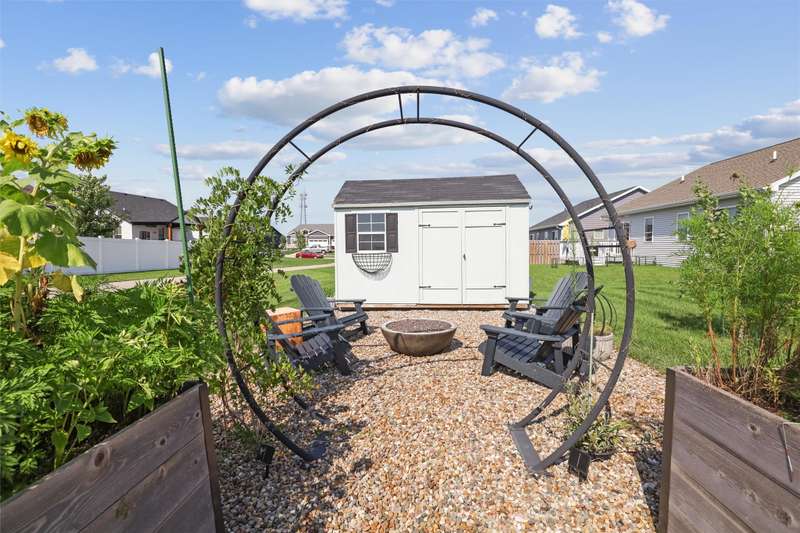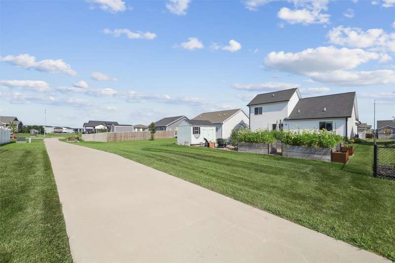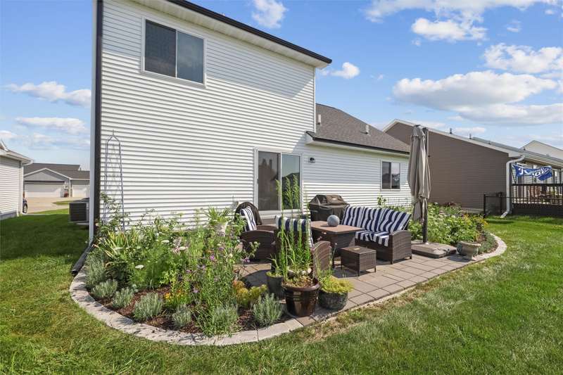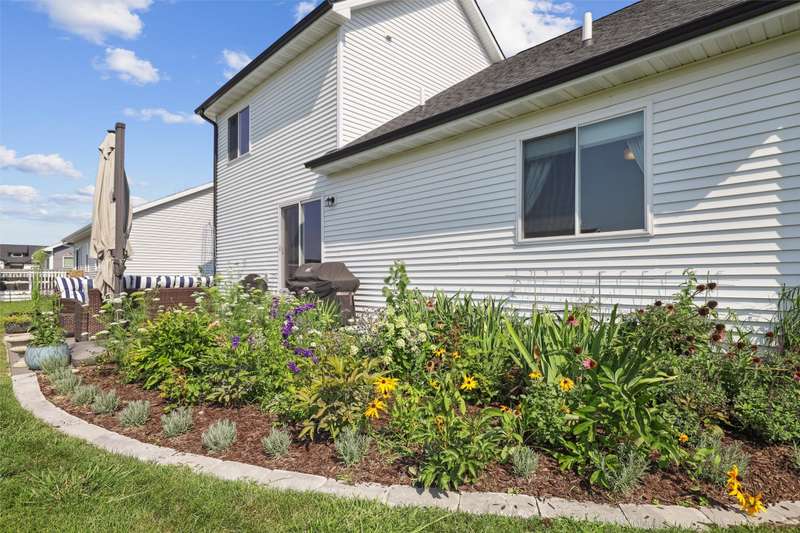 Welcome to this beautifully landscaped 1.5-story home that combines comfort, convenience, and outdoor appeal. A wonderful floor plan that features the primary suite on the main level just steps from the laundry for easy everyday living, with an updated custom walk-in closet. The open main floor includes a center-island kitchen, mudroom and half bath, and spacious living area with electric fireplace. Upstairs you'll find three additional bedrooms and a full bath, providing space for family, guests, or a home office. Outside, enjoy lush perennial gardens, raised beds for vegetables or flowers, and impressive hardscaping including a paver patio for entertaining or relaxing, with handy storage shed for tools or potting plants. A walking path directly behind the home connects to the Raccoon River Valley Trail, perfect for biking, running, or walking. The lower level offers plenty of room to finish to your needs, including plumbing rough-ins for a bathroom. Located in a convenient Waukee neighborhood close to schools, parks, and shopping. This property has thoughtful updates inside and out, and is ready for is new owners.