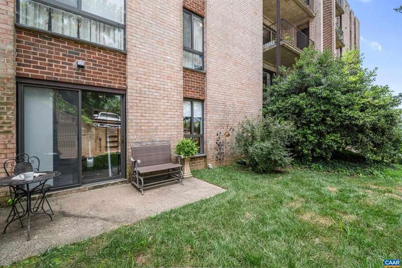 A must-see home at Charlottesville Towers, 4 blocks from the Downtown Mall, tucked away in a lovely mature City neighborhood. This condo was completely renovated in 2023, from the studs out... new electrical, plumbing, kitchen, gorgeous! A FEATURES list is included in accompanying documents. Ground level living, with two patios, one off of the primary bedroom - I'm told there are sunsets! The second patio is off of the living area, completely private by virtue of large evergreen Hollies. The two beautiful bedrooms are spacious, the full bath convenient, and the living space is completely separate from the bedroom area - really nicely-designed. Condo fees cover all utilities (water-sewer-natural gas-electricity), except cable. Design is everything when considering square footage, and this 1011 sf is incredibly well-designed... tucked away and private, spacious, really one of the nicest condominiums I've ever seen at Charlottesville Towers. -- Furnishings may be available, please inquire; and, there is a no-dog policy; cats are allowed, but only medically-required service dogs are allowed.