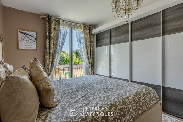 Built in the center of a pretty plot of more than 1000 m2, in a very calm and green environment, the house offers 165 m2 of functional spaces. As soon as you enter the living room, you will see the care taken with the place. The room is bright and offers a cozy living room in continuity. The equipped and fitted kitchen promises you friendly moments around its island. Its bay window opens directly onto the terrace and the swimming pool. Still on the ground floor, you will find a games room or bedroom with independent entrance, an elegant bathroom and a linen room where storage is optimized. To reach the upper floor, the stairwell lets light through its glass roofs, making the two levels harmoniously connected. There is a guest room, a master bedroom with large closet, three bedrooms, an office and a bathroom. Three of these rooms open onto a balcony offering a view with perspective.