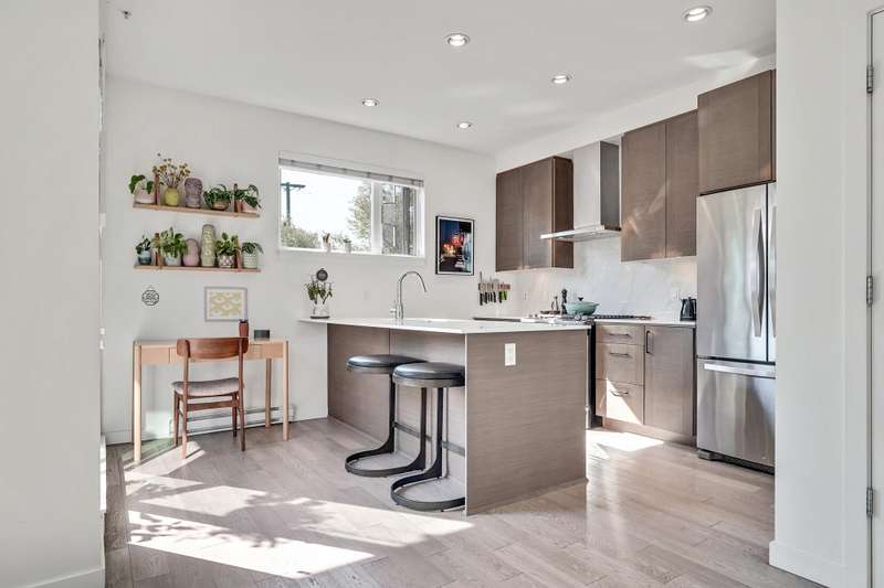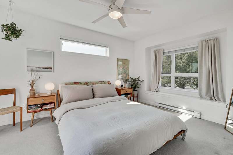 Welcome to 5962 St. George! This nearly 1500 sqft, 2-level townhome in the sought-after Oliver by Vicini, offers a wonderful blend of space, style & community. The bright SW corner fills the home with natural light. The main level features a spacious, separated living & dining area, a chef’s kitchen with gas cooktop, large pantry, & walk-out patio—perfect for entertaining. A full bath & ample storage complete this floor. Upstairs are 3 bedrooms on 1 level, including a generous primary with walk-in closet & private balcony. Finally, the top level has a wonderful rooftop deck with mountain views, the perfect spot to unwind with friends & a glass of wine. Enjoy being steps to Memorial South Park, Macdonald Park, & the shops and restaurants of Fraser.