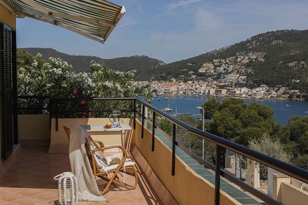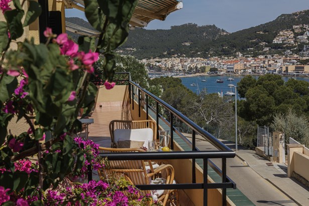 Experience this exceptional apartment with one of the most breathtaking sea views in Mallorca — overlooking the stunning bay of Port d'Andratx, La Mola, and the endless Mediterranean horizon.Port d'Andratx is a charming former fishing village on Mallorca’s southwest coast, now one of the island’s most prestigious addresses. Known for its luxury marina, fine dining, boutique shopping, and unforgettable sunsets, it offers a perfect blend of natural beauty and refined coastal living.Designed by renowned architect Pedro Otzoup, this 83 m² apartment features an open-plan kitchen and living area that opens onto a spacious 27 m² terrace — ideal for relaxing or entertaining with stunning views. The property includes two bedrooms and two bathrooms, offering a harmonious balance of comfort and style.Set within an exclusive community of just nine apartments, residents enjoy a beautiful swimming pool with panoramic views over the bay — an oasis of peace and privacy.Perfect for a small fami