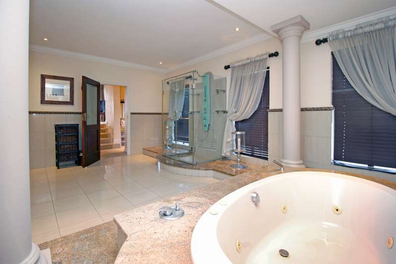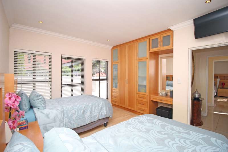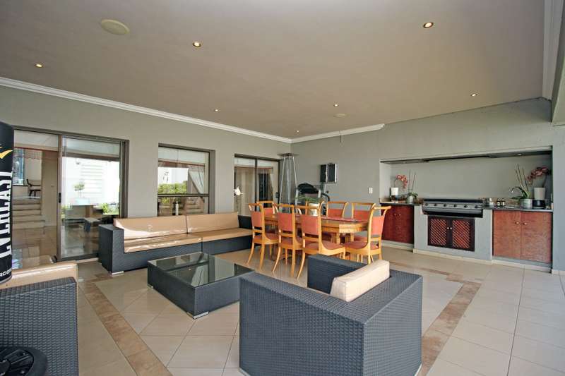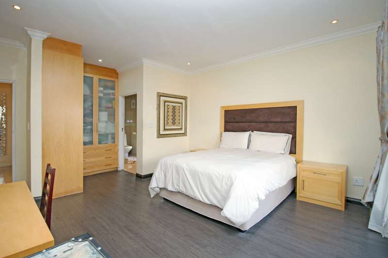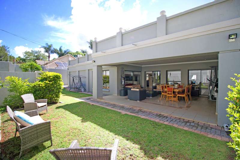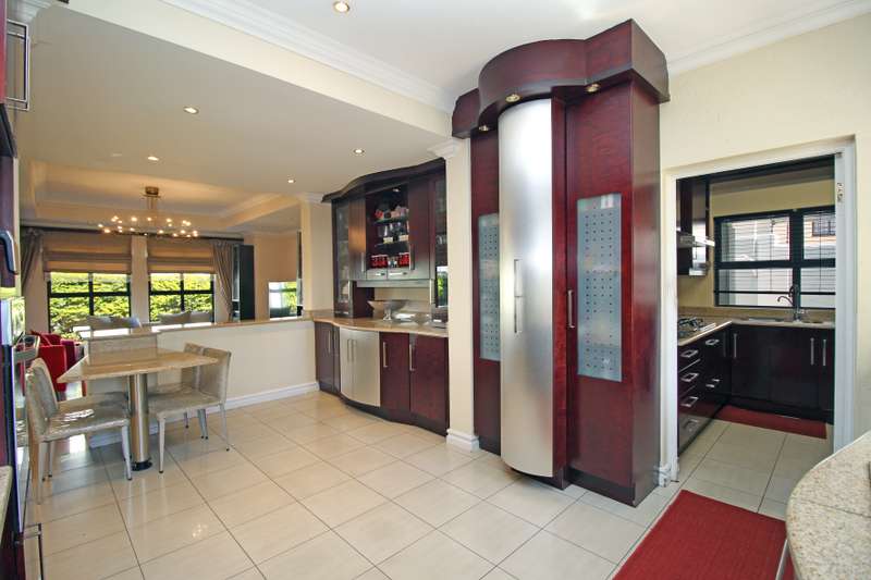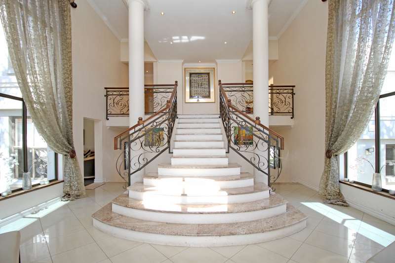 This elegant family home provides the perfect blend of family living and formal entertaining spaces in leafy Houghton. Sunny and airy, the home exudes an atmosphere of warmth and sophistication. Driving through the beautiful gates you are welcomed by a water feature to the porte cochere. The grandeur unfolds as you step into the welcoming double-volume entrance hall adorned with a marble, sweeping staircase and illuminated by the soft radiance of a chandelier. The formal lounge exudes elegance. The dining area and family TV room seamlessly connect to the covered patio and a gas braai that invites the outdoors into your haven. The open-plan modern eat-in kitchen has a center island with table seating, opens to the TV lounge and is supported by a separate scullery which opens out to the back yard. Separate laundry. The guest cloakroom is off the entrance hall. An appointed guest bedroom awaits on the ground floor, offering privacy and convenience. Ascend upstairs to the master bedroom which reveals a walk-in closet and an en-suite bathroom adorned with fine features. There are wo additional bright sunny bedrooms opening out to a wrap around balcony, and a 2nd bathroom. A gym area or a studio, an entertainment room, domestic quarters, four automated garages. and an established garden contribute to an opulent lifestyle. Extra Features: = Under floor heating. = Gas Braai. = Storage room. = Four garages. An ideal location with easy access to places of worship, good schools, highways, top restaurants, shopping centres and the Houghton Golf Club. Get in touch today and make this your forever home.