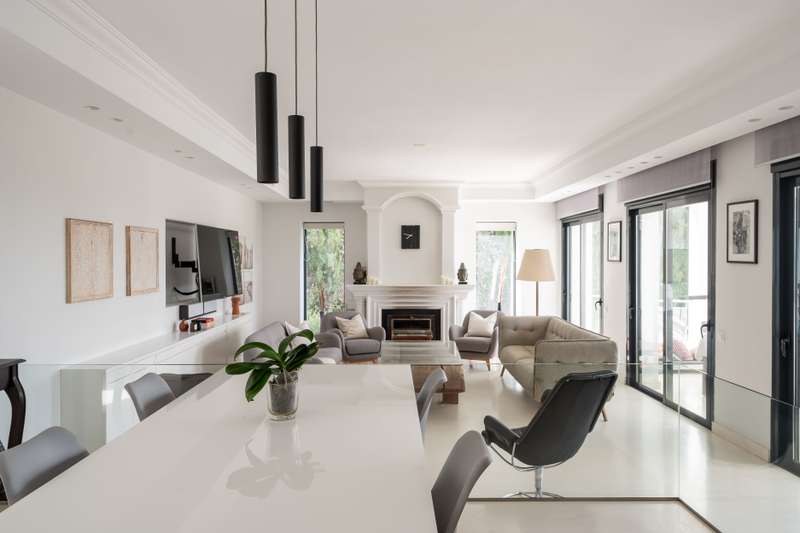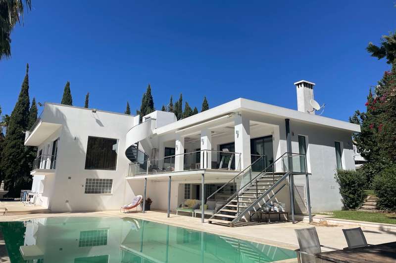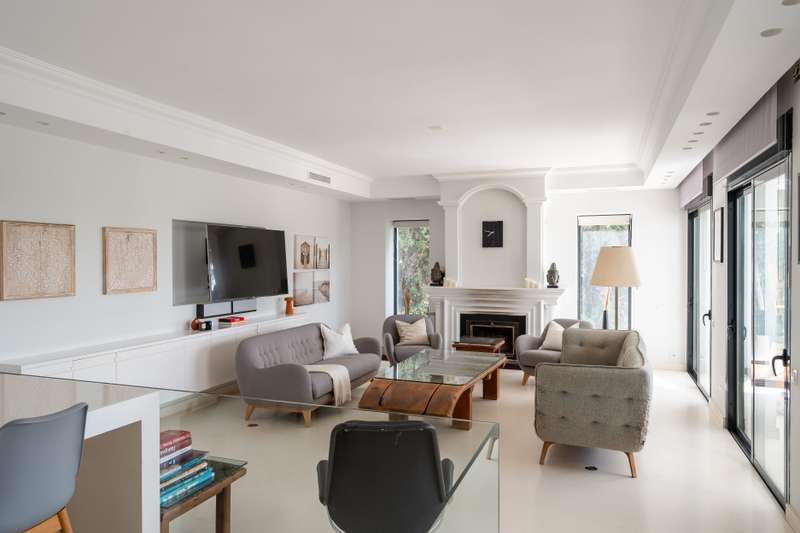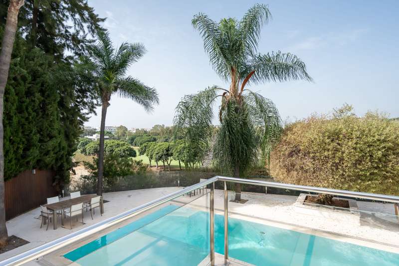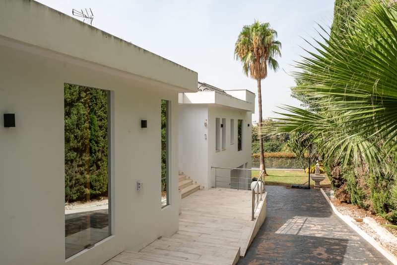 Well located villa boarding the golf course in the low-density residential area of Nueva Andalucía, in the heart of the Golf Valley, about 10 minutes from both Marbella and Estepona and around 45 minutes’ drive from Málaga airport, the villa is very easily accessible, close to golf courses, all amenities, schools, and the iconic Puerto Banús. With the living space on one level, this familiar residence is well distributed with good size rooms, and the master bedroom with beautiful views over the golf course. The open plan living and kitchen area opening out onto a nice patio area is perfect to enjoy morning breakfast. There is a terrace looking over the golf course that leads down to the pool and garden area. On the lower level there is a good size pool and a chill-out area for entertaining, and a large space currently used for storeage with a lift leading up to the next level. Also, there is a carport for two cars. Located in a quiet area with security, walking distance to golf cour