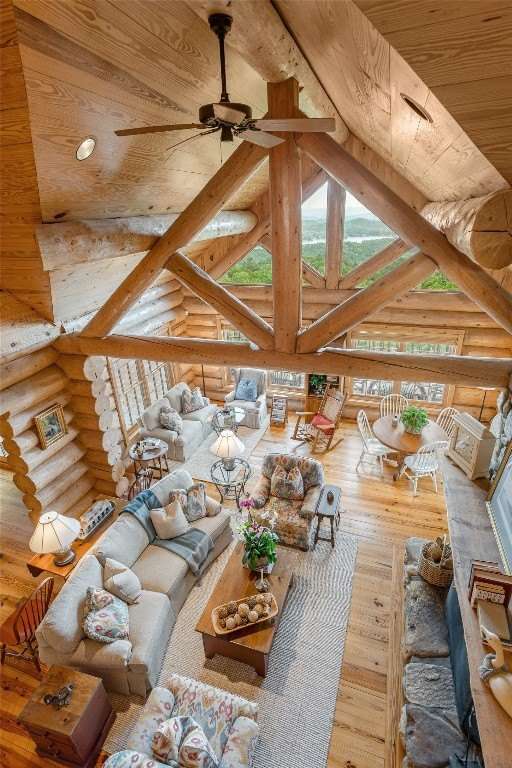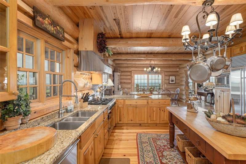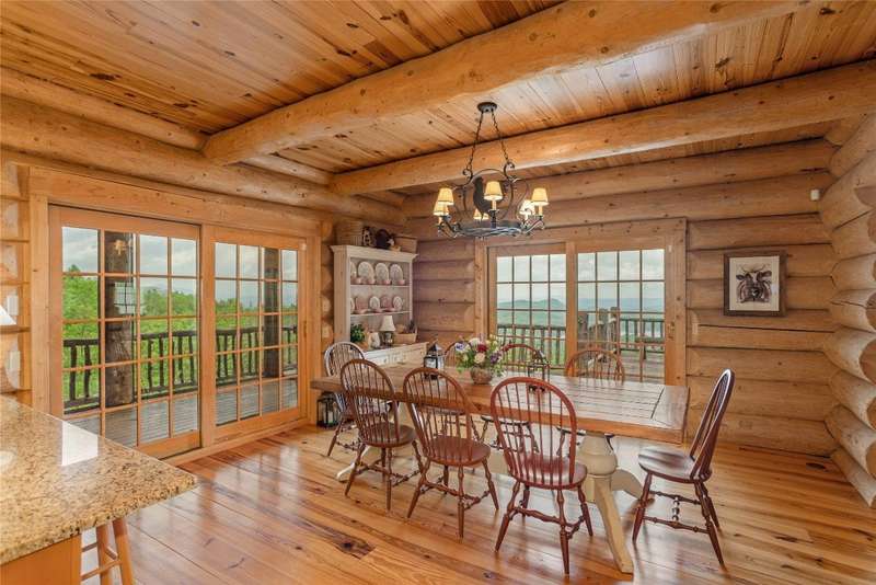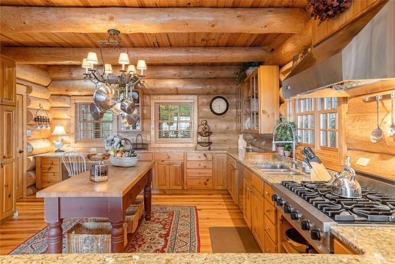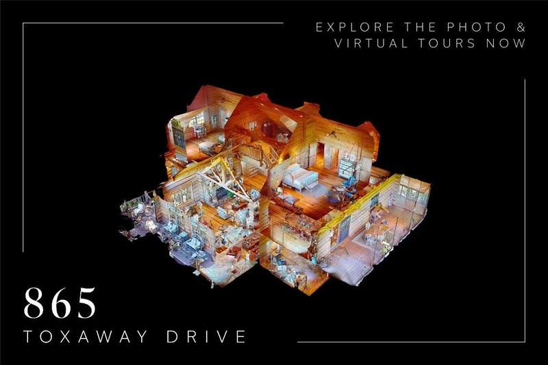 Perched atop over 12 secluded acres, this majestic log cabin estate is a rare and timeless offering - a legacy property where generations have gathered to celebrate life, love, and the breathtaking beauty of the Blue Ridge Mountains and Lake Toxaway. Every room, beam, and view tells a story. Thoughtfully crafted with intention and care, the home features five spacious ensuite bedrooms, each oriented to capture stunning vistas. The main-level primary suite is a serene retreat, complete with an impressive stone fireplace and direct access to outdoor tranquility. The main and lower-level living areas feature impressive wood-burning stone fireplaces and are framed by walls of windows that flood the interior with natural light, showcasing the expansive views. A spacious upstairs loft offers a quiet sitting area, while the lower level includes a flex room and workshop for hobbies or additional living space. At the heart of the home is a chef's dream kitchen featuring a Sub-Zero refrigerator, a Viking gas range, a Bosch dishwasher, and a large prep island. The kitchen seamlessly connects to the adjacent dining area, powder room, and laundry room. Ideal for entertaining guests or hosting intimate family gatherings, this home was designed for making memories. Outside, a private driveway leads through a laurel gate and over a picturesque bridge to a cascading waterfall. Multiple oversized decks, a screened-in sunroom, and a generous carport leading to a covered front porch offer abundant outdoor living space to enjoy the crisp mountain air and gaze at the mountains and moonrises. This remarkable estate, now being offered for the first time, is impeccably maintained, partially furnished, and offers enduring hardwood and large stone flooring, oversized bathrooms, and quality craftsmanship throughout. Located within the sought-after Lake Toxaway Estates community and just under an hour from Asheville Regional Airport, this home is ideally situated to enjoy the nearby mountain communities of Brevard, Sapphire, Cashiers, and Highlands. More than a home, this is a rare opportunity to create a legacy in one of Western North Carolina's most treasured settings.