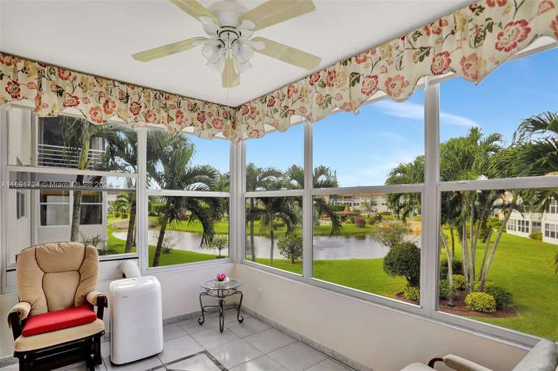 Beautiful unit with 2 bedrooms and 2 bathrooms in Rose Building, Hawaiian Gardens Phase 7. This condo offers a comfortable and stylish living space with beautiful water views. The new remodeled opened kitchen features white cabinets, a sleek backsplash, and brand-new appliances, including a dishwasher and refrigerator. The unit boasts tile flooring throughout, and the spacious Florida room is a perfect spot to enjoy Florida's great weather, with large updated windows and an AC unit for added comfort. Relax and take in the serene views of the fountain and lake. Located in a well-maintained, HOPA-verified community, you'll enjoy a variety of amenities such as a pool, shuffleboard, bocce, darts, and BBQ grills. Plus, internet is included for your convenience. Hurry up, won't last!