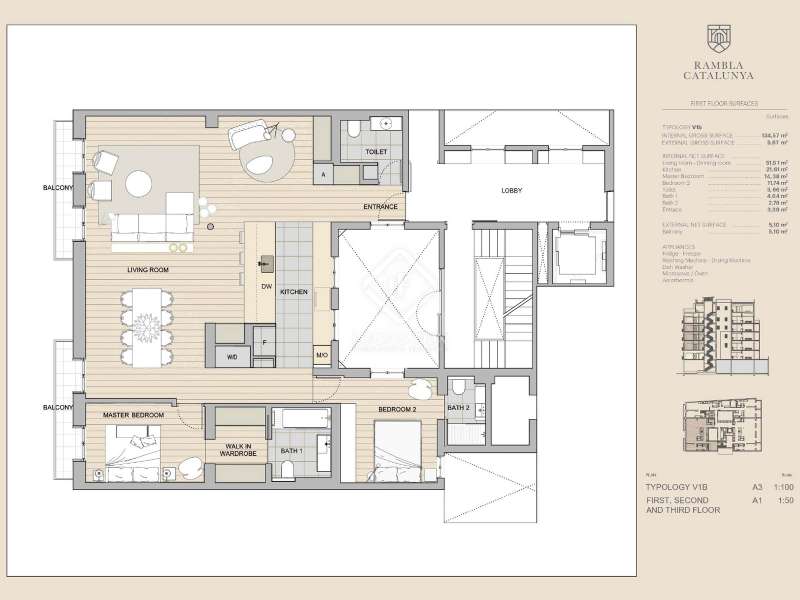 Rambla Catalunya 107 is the epitome of luxury urban living with its superb location on Rambla de Catalunya, beautiful façade and stylish contemporary yet classic interiors. This new development consists of two classic late 19th-century buildings in front of Passeig de la Concepció, a great spot with restaurants and a lively atmosphere. The apartments are a delight to live in with high ceilings, exposed brickwork, high ceilings, and luxury finishes. The building and its apartments reflect Barcelona's culture and aesthetic beauty and provide a strategic base from which to enjoy all these cosmopolitan city offers. This 135m² property is on the fourth floor and offers an open-plan living-dining room and an open kitchen in the day area. In the night area, we can find 2 bedrooms and 3 bathrooms. This exterior home also has 5m² balconies facing Rambla Catalunya street. This an exceptional opportunity to make a home and enjoy high investment potential in one of Barcelona's most exclusive neighbourhoods. Finishes are of excellent quality and the colour scheme is tasteful and neutral; meaning the new owner can simply move in and enjoy adding their personal touch to an already impeccable home. Please contact us for further information.