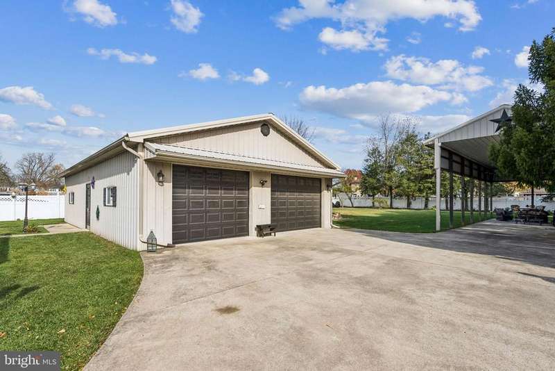 Dont miss this one-of-a-kind property! This 3-bedroom, 2-bath rancher sits on a double lot within walking distance to Main Street. Enjoy peace of mind with a new HVAC system, plus an abundance of parking options a 4-car detached garage, a large carport, and tons off-street parking. The fully fenced yard offers privacy and plenty of room for outdoor activities. Inside, the primary suite features a spacious walk-in closet, double vanities, and a soaking tub for ultimate relaxation. The open-concept layout provides generous living space, perfect for entertaining family and friends. The full basement is dry, heated, and features high ceilings, offering abundant storage or an easy opportunity for finishing. Laundry hookups are currently located in the basement, but first-floor hookups are already in the mudroom make single-level living a simple upgrade. This property truly combines convenience, comfort, and potential. On top of all this the seller is providing a 1 year home warranty!